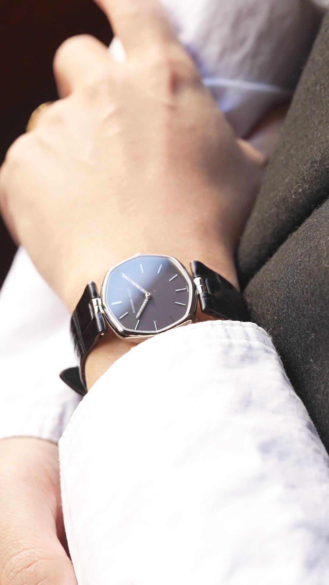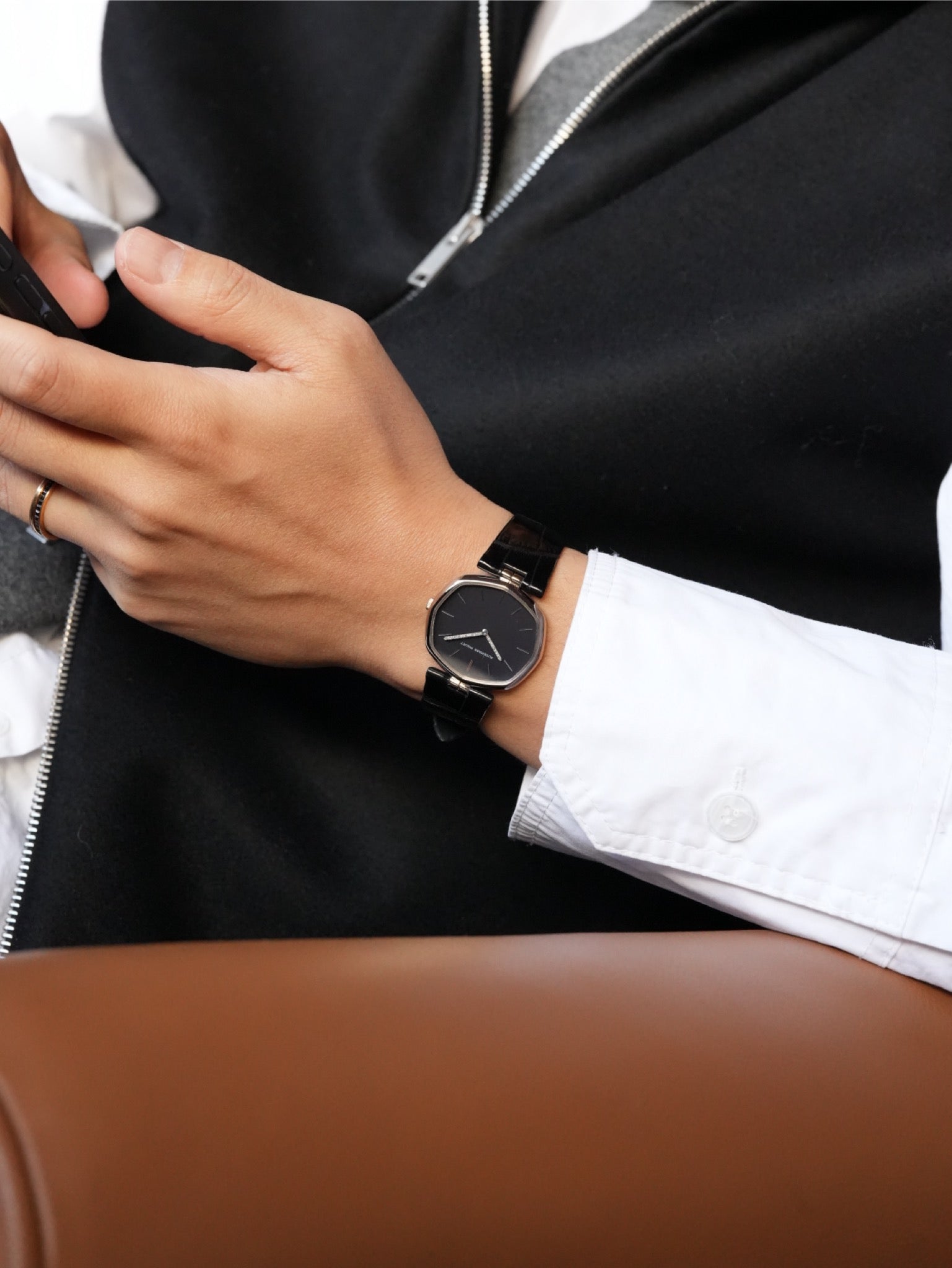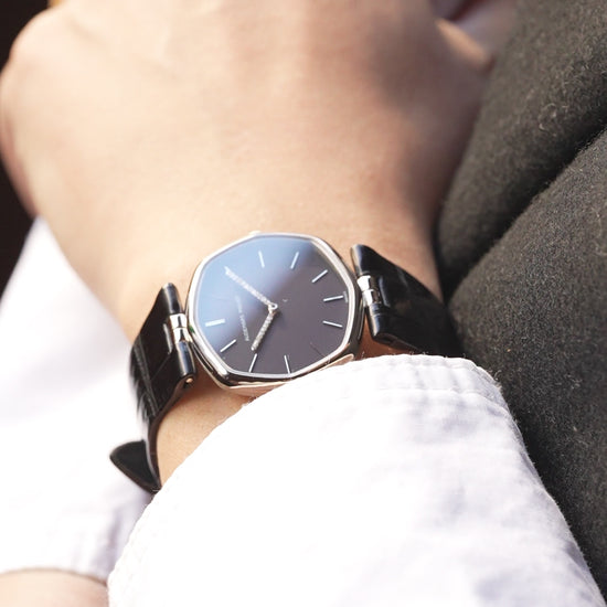 | A refined vintage Audemars Piguet ultra-thin dress watch from the 1970s, featuring an elegant soft octagonal case design. This model represents Audemars Piguet's discreet and sophisticated design language prior to the Royal Oak era. While clearly octagonal in structure, the gently rounded bezel and slim profile give the watch a refined appearance, almost floating often associated with the Disco Volante aesthetic of the period. The minimalist dark dial is accented by baton hour markers and an exceptional detail: a diamond-set minute hand, a subtle expression of luxury typical of high-end Audemars Piguet dress watches from this era. Powered by an ultra-thin hand-wound movement (likely Cal. 2003), renowned for its elegance and shared heritage among the finest Swiss manufactures. An understated yet highly collectible piece, ideal for collectors seeking Audemars Piguet's pure dress-watch identity before the rise of luxury sports watches. ⸻ Details • Brand: Audemars Piguet • Era: 1970s • Case: Soft octagonal case • Movement: Hand-wound ultra-thin • Dial: Dark dial with diamond-set minute hand • Strap: Leather (replacement) |