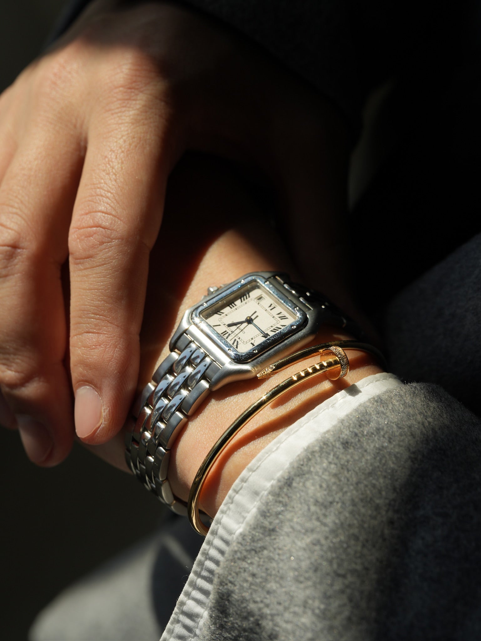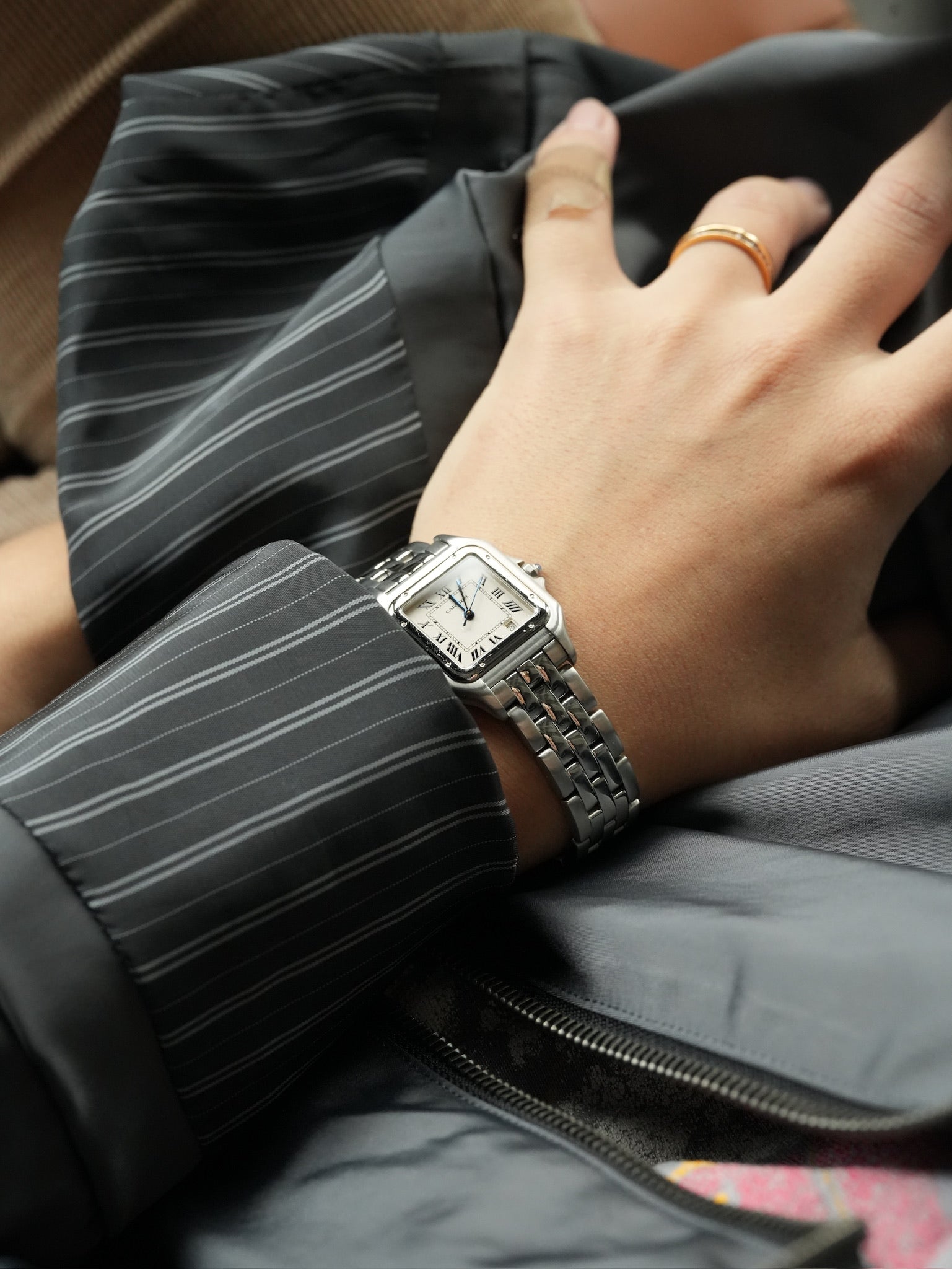 | Cartier Panthère Ref. W25054 The Panthère de Cartier is one of the most iconic bracelet watches ever created, known for its seamless balance between jewelry and watchmaking. Ref. W25054 is a stainless steel model that perfectly represents the elegant and refined spirit of the Panthère line, a design that became a symbol of luxury style throughout the late 1980s and 1990s. Its softly curved square case, secured by visible screws on the bezel, reflects Cartier's signature aesthetic, while the classic white dial with Roman numerals and blued steel hands preserves the timeless look that defines the brand. The integrated bracelet is one of the most distinctive elements of the Panthère, designed to wear like fine jewelry rather than a traditional watch. Each link moves smoothly, giving the watch a fluid, comfortable fit on the wrist. This reference is powered by a quartz movement, allowing the case to remain slim and elegant, which was essential to the design philosophy of the Panthère. The proportions make it suitable for both men and women, but especially desirable for those who appreciate smaller vintage sizes that sit naturally on the wrist. Unlike sport watches, the Panthère was created as a statement of style. It is a watch that does not rely on complications, but on proportion, finishing, and the unmistakable design language of Cartier. Ref. W25054 remains one of the most wearable and collectible Panthère references today, combining everyday practicality with the quiet luxury that defines vintage Cartier. |