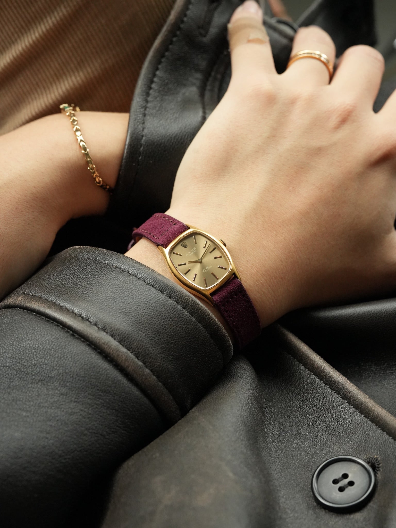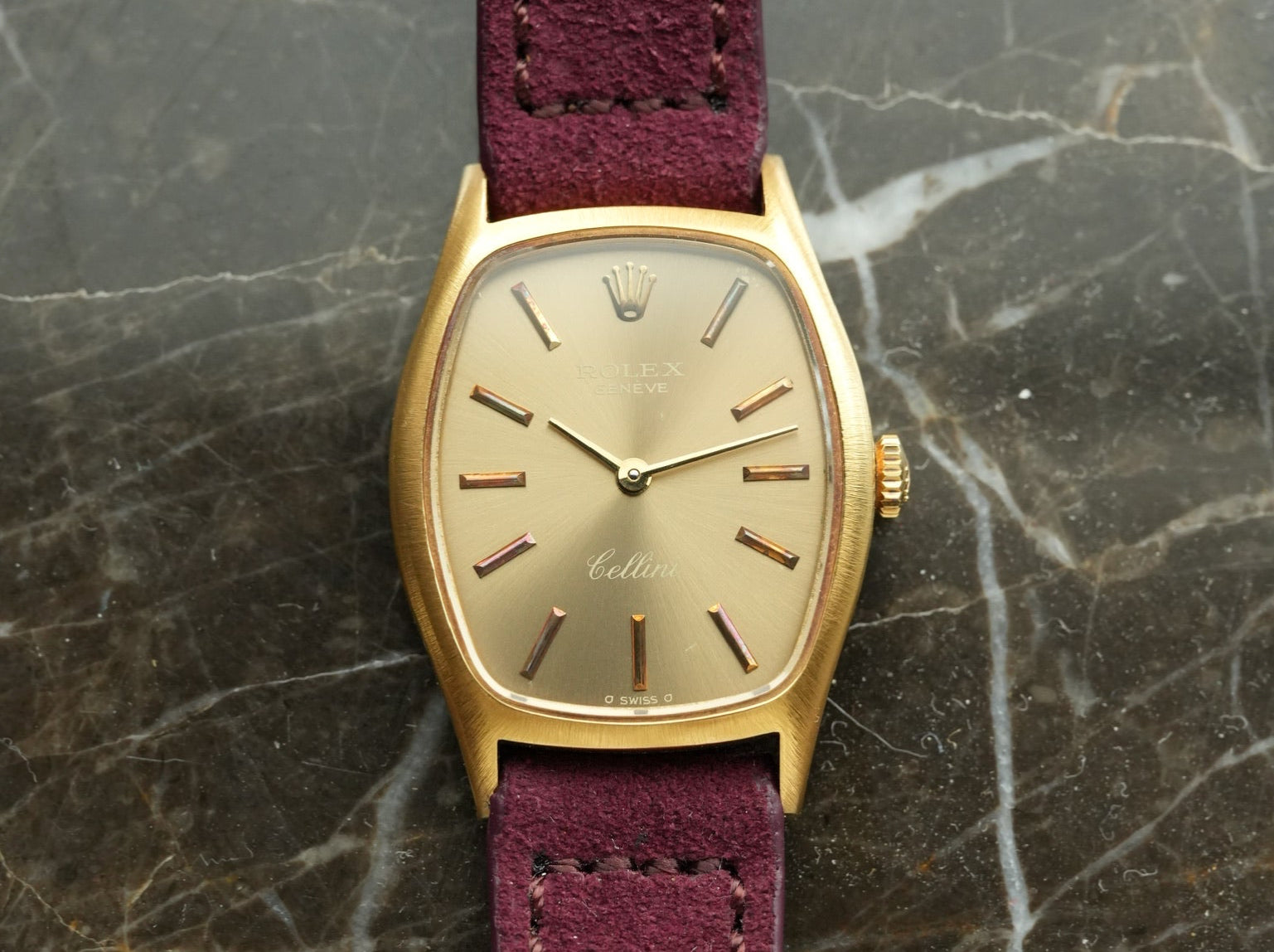 | Rolex Cellini Ref. 3803 A refined example from Rolex's classic dress line, the Cellini Ref.3803 represents the brand's elegant side, far removed from its well-known sport models. Produced around the 1970s–80s, this reference features a distinctive cushion-shaped case that perfectly reflects the design language of the era — soft curves, sharp edges, and a balance between polish and satin finishing. This particular model comes in a solid 18k yellow gold case with a clean sunburst dial and applied baton indexes, creating a look that is both understated and sophisticated. The minimalist two-hand layout keeps the focus entirely on proportion, texture, and light, which is exactly what makes vintage Cellini watches so appealing to collectors today. The boys size case offers one of the most versatile proportions in vintage Rolex. Large enough to wear as a men's dress watch, yet perfectly suited for smaller wrists, this size has become increasingly desirable in recent years, especially among those who appreciate classic watches with a jewelry-like presence. Rolex sports models, the Cellini line was designed purely for elegance. No date, no rotating bezel, no unnecessary functions — only form, material, and balance. Because of this philosophy, vintage Cellini pieces often feel closer to fine jewelry than to tool watches. Ref.3803 stands out for its beautiful case shape, warm gold tone, and timeless simplicity, making it one of the most collectible vintage Cellini references today. |