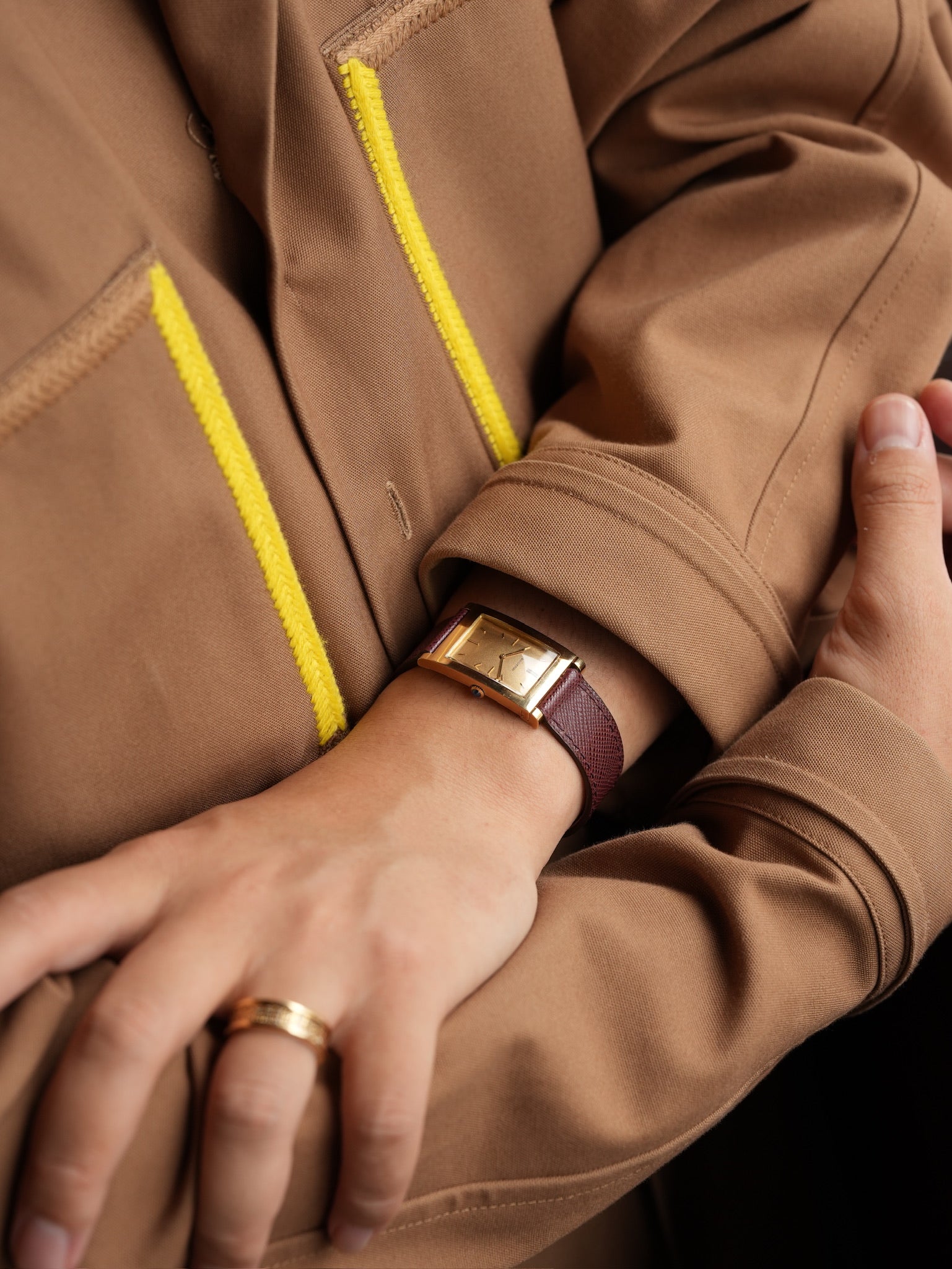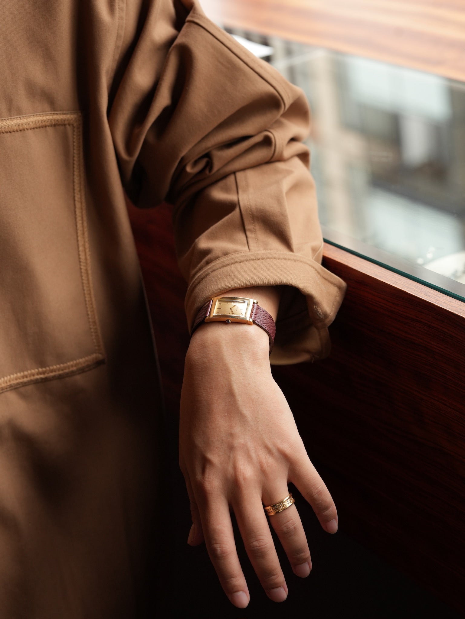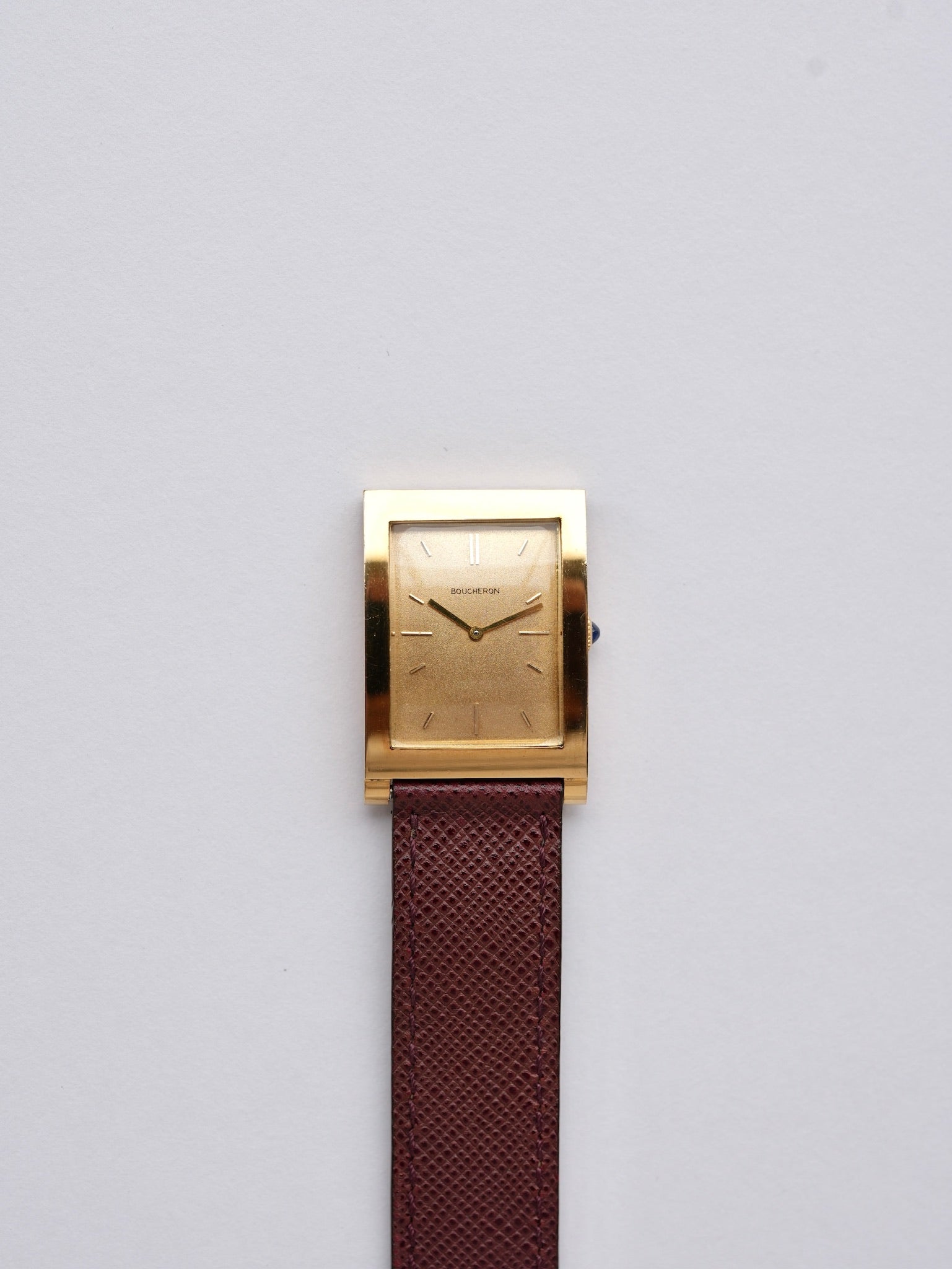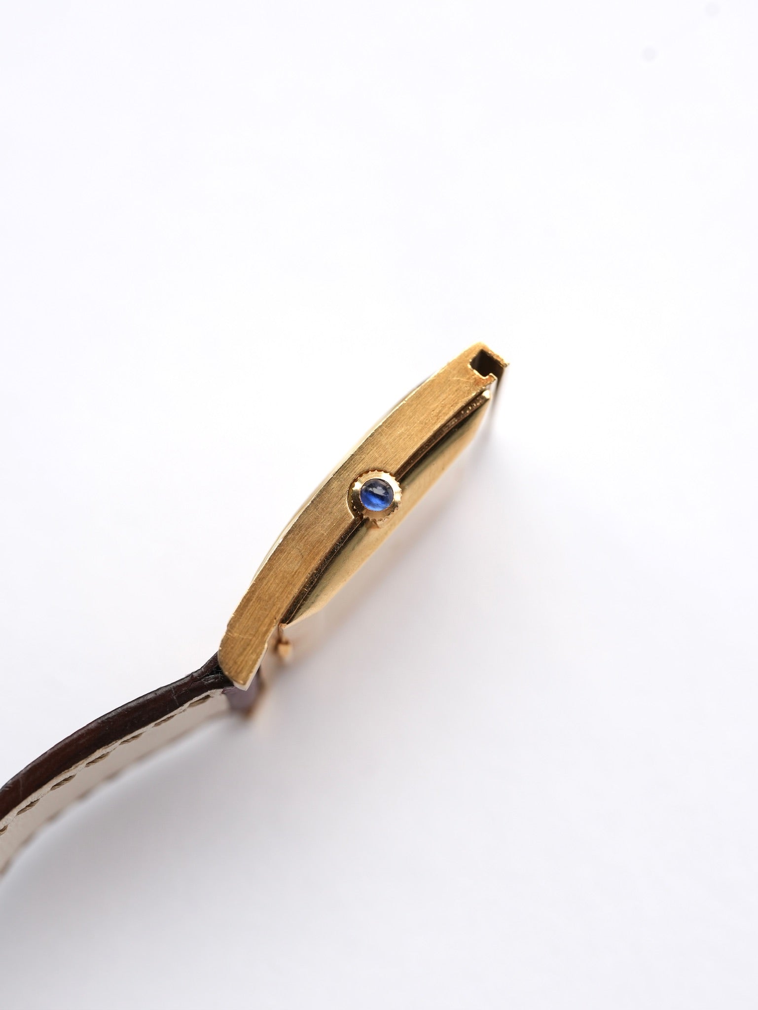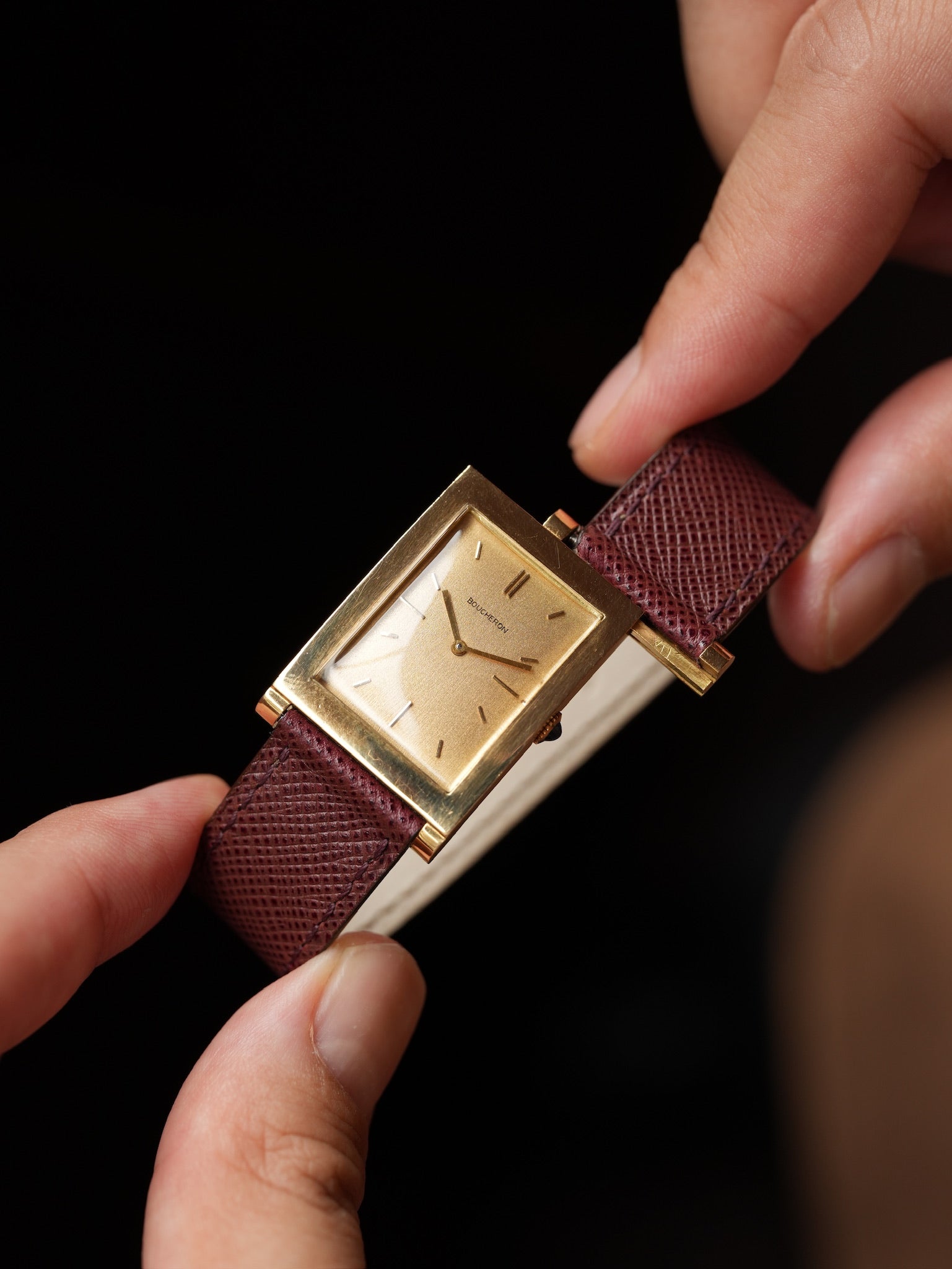 | The Boucheron Reflet was born in 1947, in a Paris longing for grace after the war. Created by one of Place Vendôme’s great jewelry maisons, it offered not complication, but clarity. Not opulence, but restraint. A jeweler’s vision of time itself. Among its many iterations, this rare early 1970s hand-wound model holds a special place. Before quartz reshaped the world of watchmaking, this Reflet still beat with the rhythm of human touch. Winding it is not a task — it’s a ritual. A moment to pause. A way to feel time, rather than simply measure it. The softly curved rectangular case hugs the wrist like a brushstroke. Gold-toned and mirror-smooth, it captures light like a quiet flame. Its dial features slender bar indexes, aligned with perfect symmetry. No numerals, no excess — only form, proportion, and silence. Time here is not announced. It’s allowed to breathe. At the crown, a cabochon gleams like a single drop of dusk. A discreet reference to Boucheron’s haute joaillerie roots. This is not ornamentation for show — it is balance, like punctuation in a poem. And beneath the elegance lies quiet innovation. The Reflet introduced the world’s first interchangeable strap system — a sliding mechanism that allowed for quick, effortless strap changes. It turned the watch into something more fluid, expressive, and wearable. Not just a timepiece, but a companion to fashion, mood, and self-expression. |