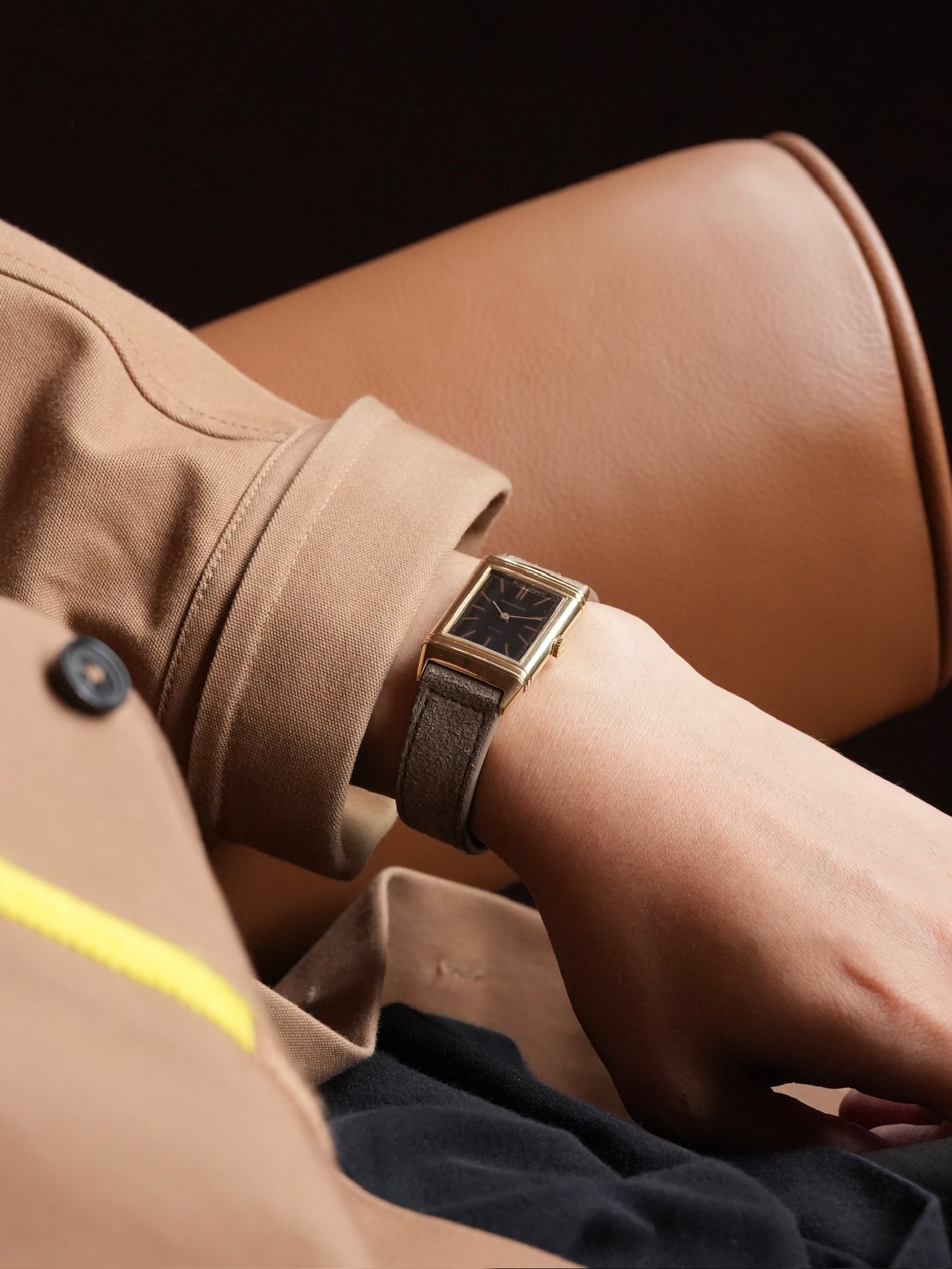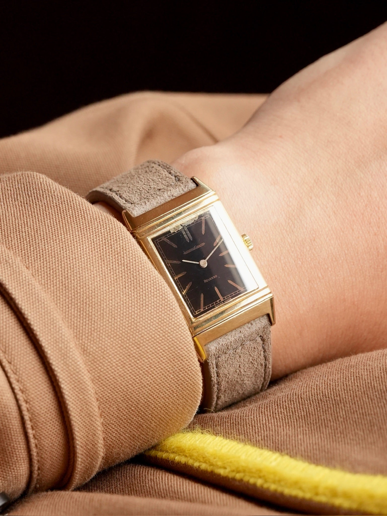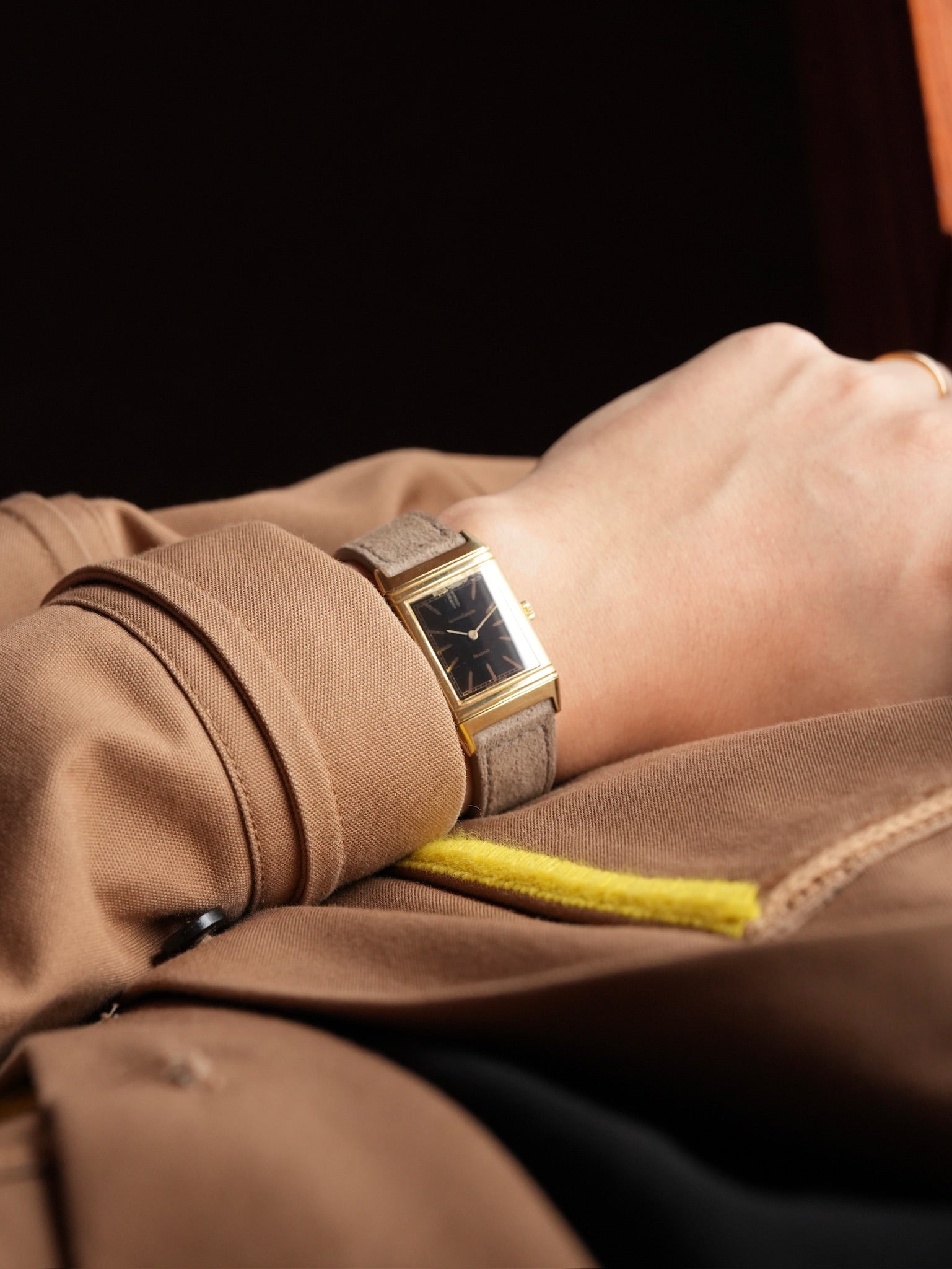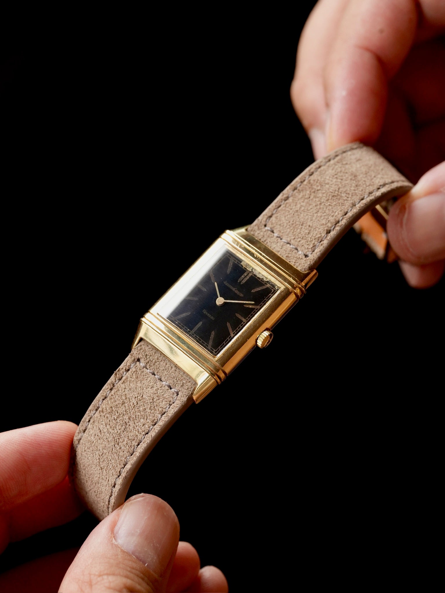 | As time passes, its character only grows deeper. This Jaeger-LeCoultre Reverso, crafted in the 1970s, carries the quiet dignity of a bygone era. Its 23×35mm case is smaller than today’s models, giving it refined proportions and vintage charm. On the wrist, the compact size offers presence without excess. Like a finely made piece of jewelry, it rests naturally against the skin, peeking subtly from beneath a cuff to lend understated elegance. It’s a scale that modern, larger watches can’t replicate. The black dial has gained depth through decades of gentle aging, with subtle tonal shifts and softened luster. Gold-tone hands and indices stand out beautifully against the aged surface, catching light in a restrained yet captivating way. The 18K yellow gold case radiates warmth and richness the moment it touches your hand. Paired with black, the color combination is timeless—softened by age into a mellow glow. Solid gold brings not just weight and luxury, but a patina that tells its own story, something steel cannot match. Introduced in 1931 to protect the dial during polo matches, the Reverso’s reversible case remains its hallmark. This 1970s example stays true to that spirit, with craftsmanship and design language unique to its era. Small gold Reversos from this period are rare, highly sought by collectors. A change of strap transforms its character: suede offers modern ease, while crocodile or calf elevates it to formal elegance. Its size works equally well for men and women, making it truly versatile. A vintage watch is never just a timekeeper. It’s a vessel for stories—of moments lived and eras gone. The quiet sophistication and patina of this Reverso carry those stories forward, inviting a new custodian to continue its journey. 【Detail】 70's 18YG 23×35 Manual winding Watch only |