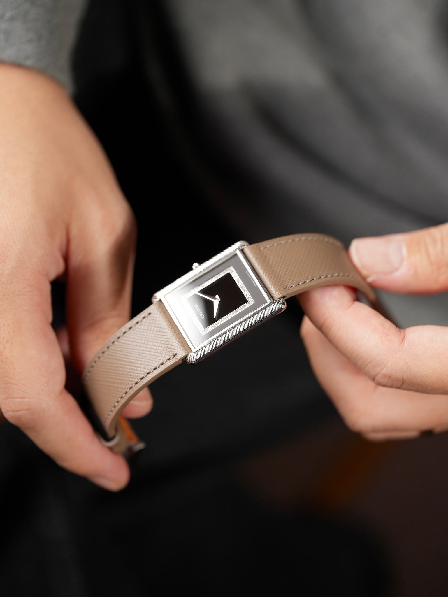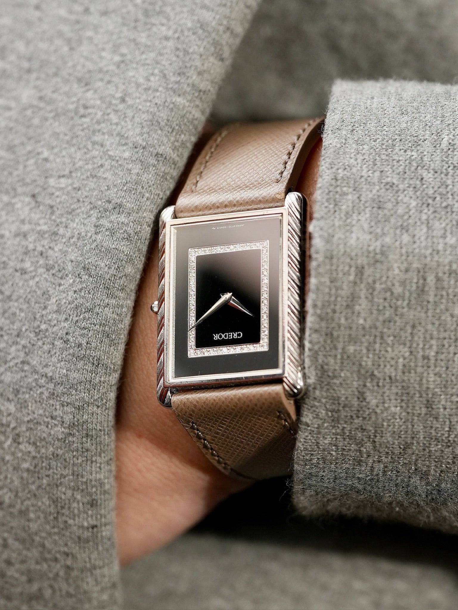 his Credor watch seamlessly combines a white gold case, onyx dial, diamond settings, and hand-engraved details, offering a unique allure. The white gold case provides lasting durability and a subtle elegance, making it versatile for both formal and casual occasions. The deep black onyx dial contrasts beautifully with the diamonds, creating a striking visual. Onyx, known for its symbolic protection and energy, adds a powerful presence, while the diamonds sparkle like stars, enhancing the watch’s refined elegance. The diamond settings are crafted by skilled artisans, adding both glamour and depth. These diamonds reflect light from various angles, creating a captivating shimmer. In addition, the case is adorned with intricate hand-engraving, which requires high craftsmanship, adding individuality and delicate sophistication. This engraving complements the white gold’s subtle shine, offering the wearer a sense of exclusivity. Credor, part of the Seiko group, is known for blending precision engineering with artistic design. This watch exemplifies that, combining traditional Japanese aesthetics with modern style. From material selection to detailed craftsmanship, every element is finished to the highest standards. The combination of onyx, diamonds, and hand-engraved white gold makes this Credor watch a luxurious and elegant timepiece, one that its owner will cherish for years. |