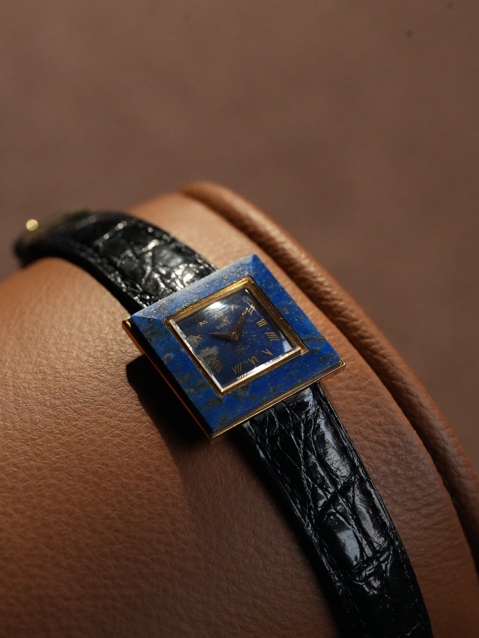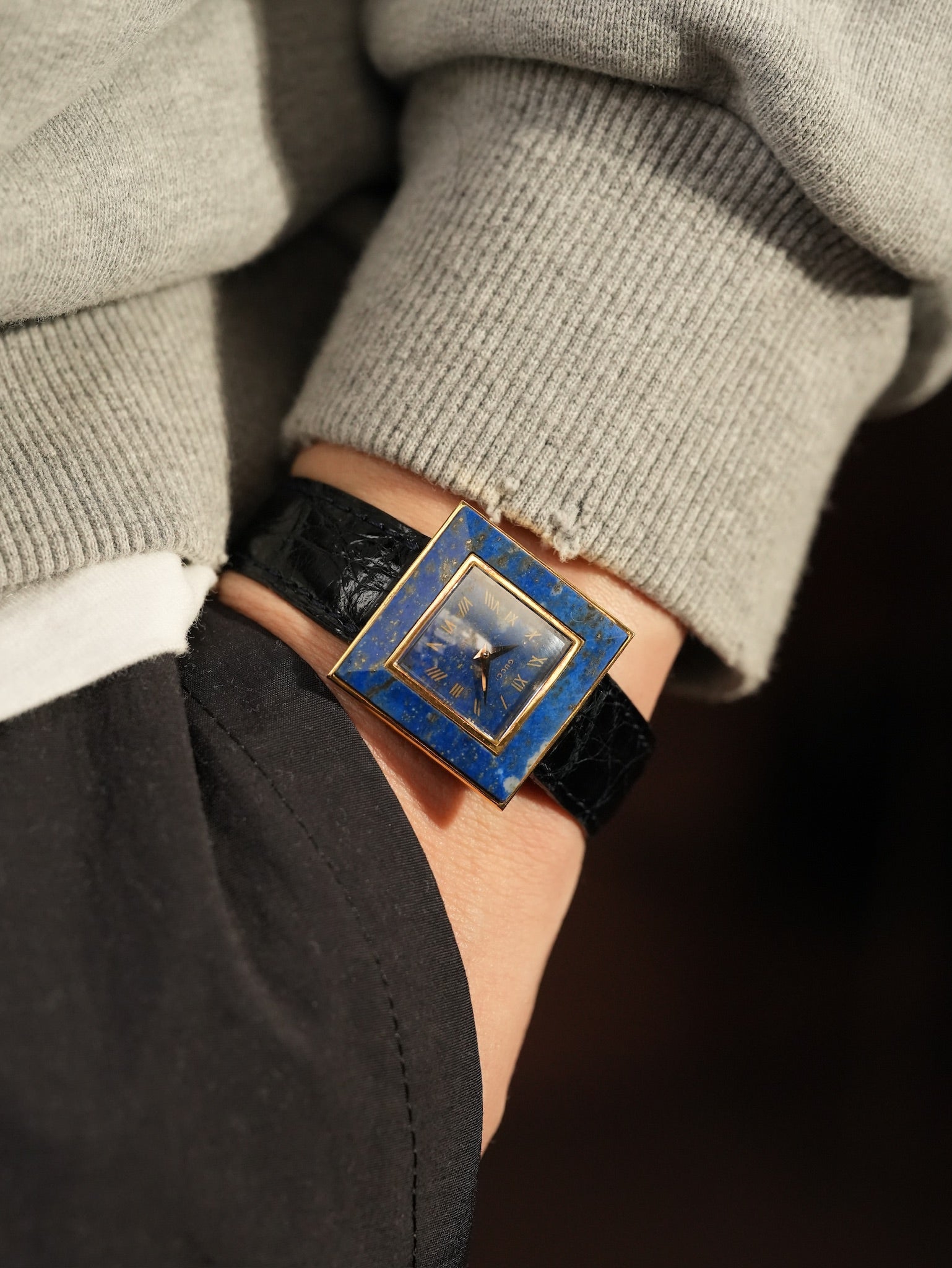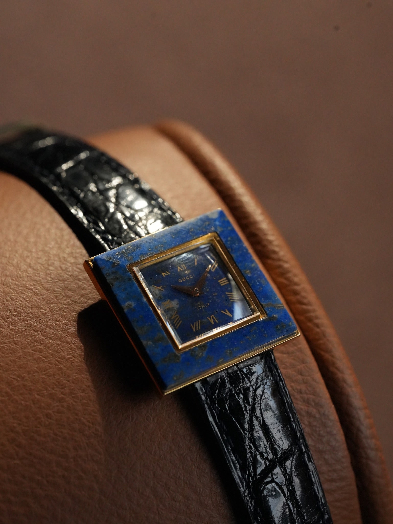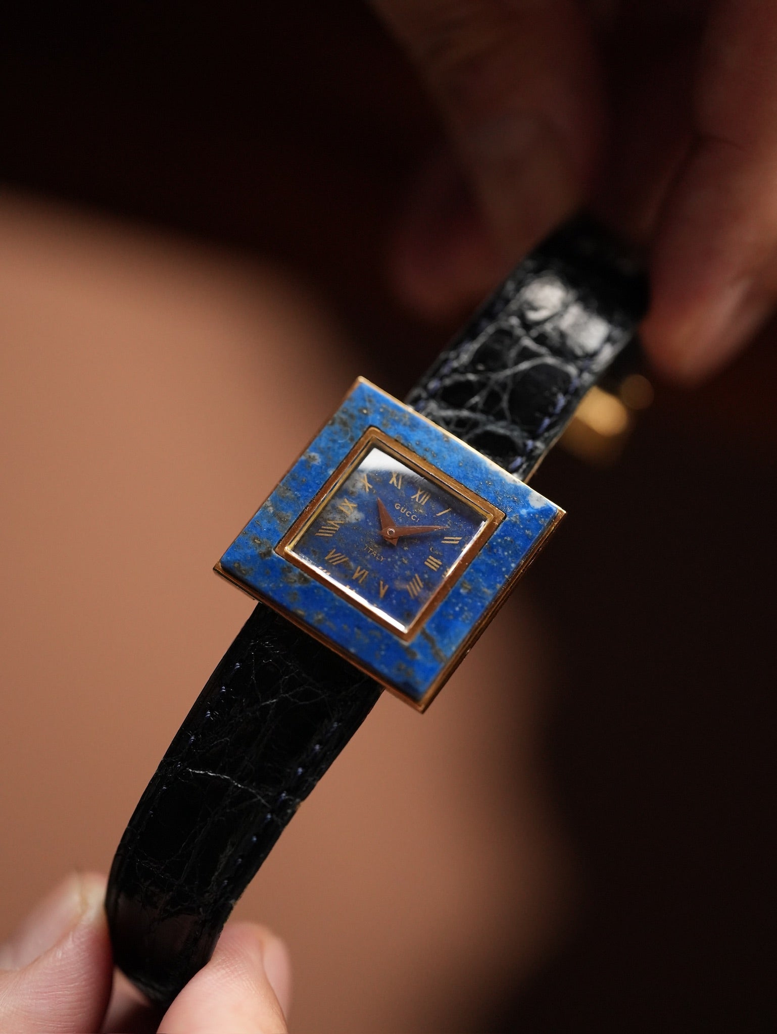 | This Gucci watch from the 1980s is an exceptionally rare and luxurious model, featuring a solid 18K gold case and genuine lapis lazuli on both the bezel and dial. At the time, Gucci was expanding into high-end jewelry watches while leveraging Swiss watchmaking expertise, but models incorporating such precious materials were extremely limited. The use of natural lapis lazuli on both the bezel and dial sets this watch apart. In the 1980s, brands like Cartier, Piaget, and Van Cleef & Arpels incorporated gemstones into their designs, but Gucci’s execution is particularly rare, making this a highly valuable collector’s piece. Lapis lazuli’s deep blue hue with golden pyrite flecks has long symbolized wealth and prestige, giving the watch a striking, jewel-like presence. The solid 18K gold case further enhances its value. While most Gucci watches of this era were gold-plated, this model’s solid gold construction offers superior durability and investment potential. Additionally, it is powered by a Swiss-made ETA manual winding movement, an unusual choice in an era dominated by quartz watches. The ETA movement ensures reliability, mechanical beauty, and collectibility, making it even more appealing to enthusiasts. This watch embodies Gucci’s ambition to establish itself in the luxury watch market, representing the pinnacle of 1980s haute horology. Very few Gucci models have ever combined precious metals, gemstones, and Swiss mechanical movements in such a refined manner, making this an exceptionally rare timepiece. More than just a watch, this is a fusion of jewelry, art, and fine Swiss craftsmanship. It stands as a symbol of status and refinement, a unique chapter in Gucci’s watchmaking history, and a true collector’s masterpiece. If the watch contains materials restricted by the Washington Convention, such as crocodile leather straps, we will remove those materials before sending the watch overseas. |