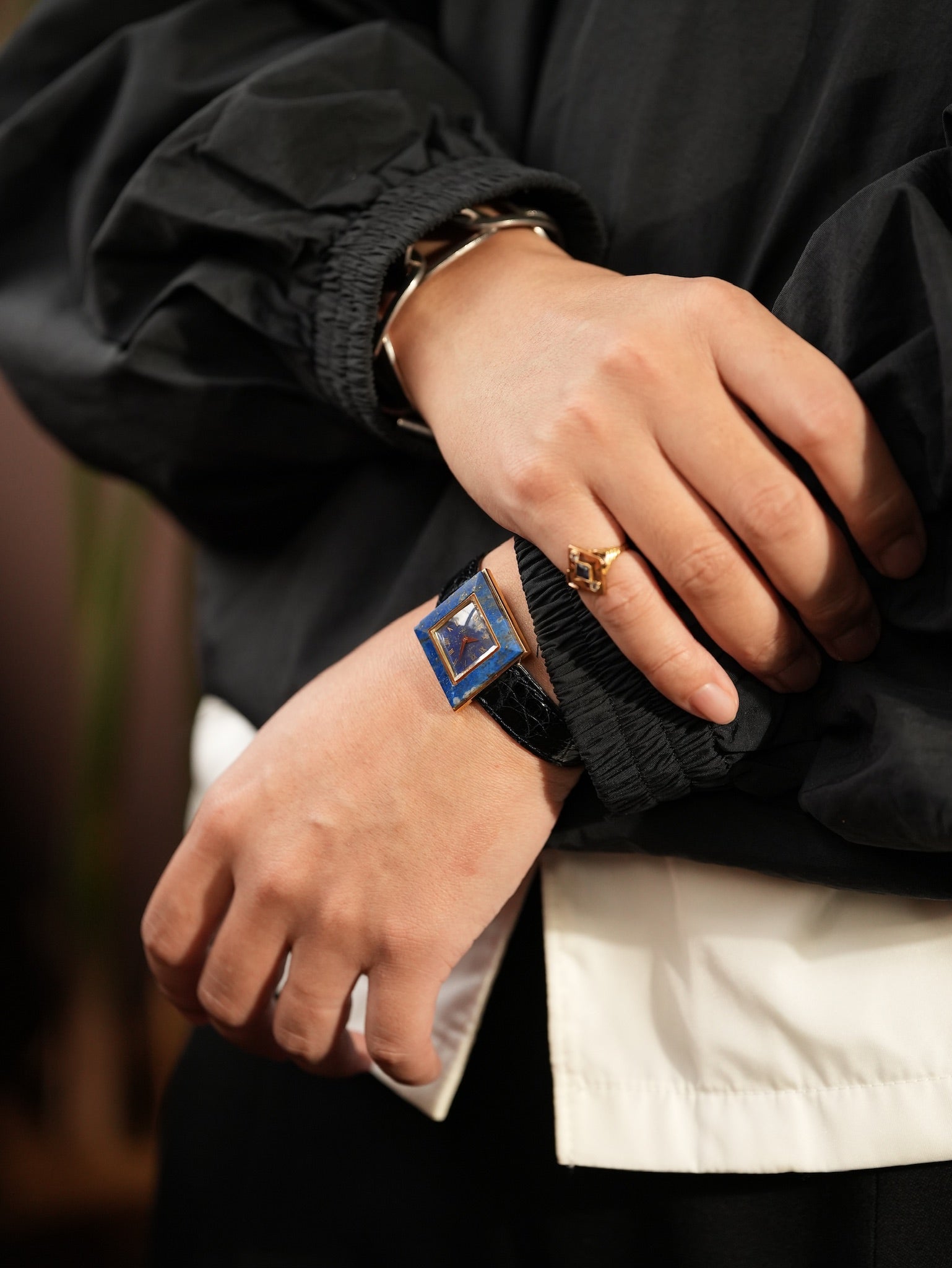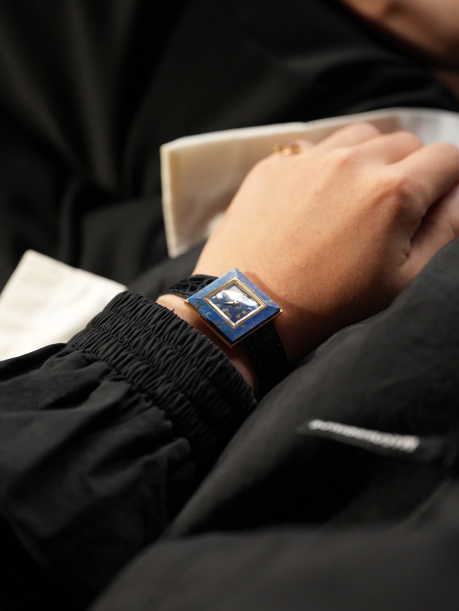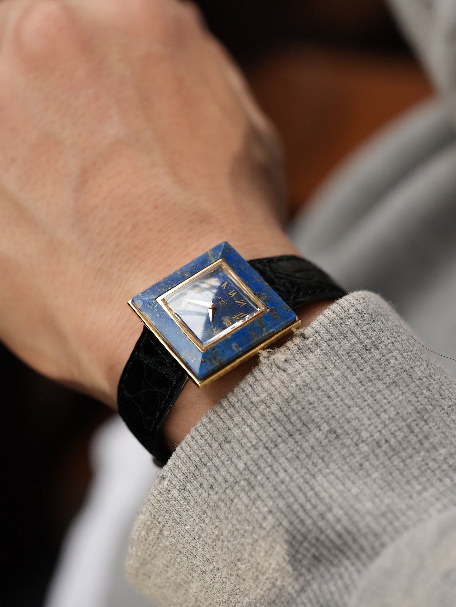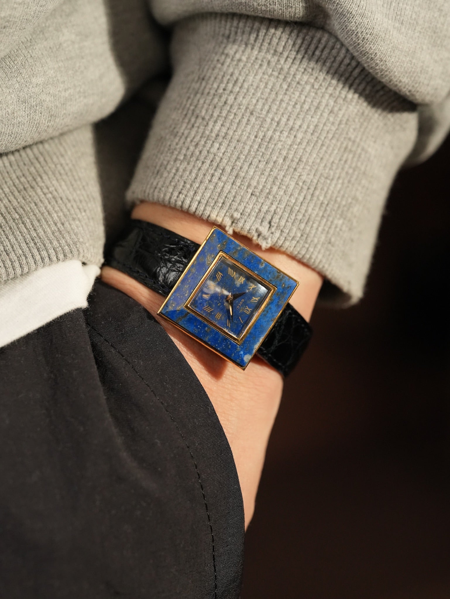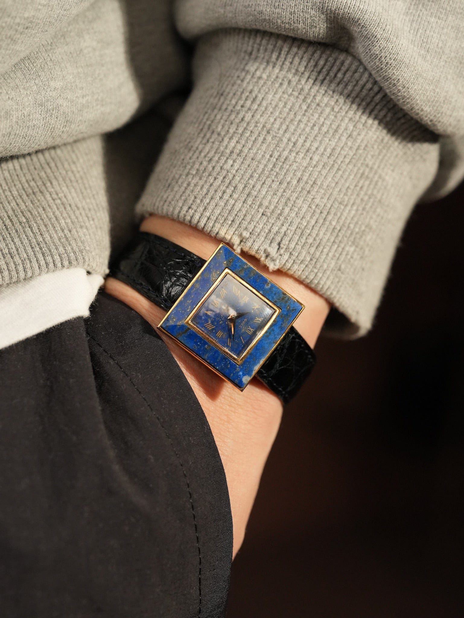 | This Gucci watch from the 1980s is an exceptionally rare and luxurious model, featuring a solid 18K gold case and genuine lapis lazuli on both the bezel and dial. At the time, Gucci was expanding into high-end jewelry watches while leveraging Swiss watchmaking expertise, but models incorporating such precious materials were extremely limited. The use of natural lapis lazuli on both the bezel and dial sets this watch apart. In the 1980s, brands like Cartier, Piaget, and Van Cleef & Arpels incorporated gemstones into their designs, but Gucci’s execution is particularly rare, making this a highly valuable collector’s piece. Lapis lazuli’s deep blue hue with golden pyrite flecks has long symbolized wealth and prestige, giving the watch a striking, jewel-like presence. The solid 18K gold case further enhances its value. While most Gucci watches of this era were gold-plated, this model’s solid gold construction offers superior durability and investment potential. Additionally, it is powered by a Swiss-made ETA manual winding movement, an unusual choice in an era dominated by quartz watches. The ETA movement ensures reliability, mechanical beauty, and collectibility, making it even more appealing to enthusiasts. This watch embodies Gucci’s ambition to establish itself in the luxury watch market, representing the pinnacle of 1980s haute horology. Very few Gucci models have ever combined precious metals, gemstones, and Swiss mechanical movements in such a refined manner, making this an exceptionally rare timepiece. More than just a watch, this is a fusion of jewelry, art, and fine Swiss craftsmanship. It stands as a symbol of status and refinement, a unique chapter in Gucci’s watchmaking history, and a true collector’s masterpiece. If the watch contains materials restricted by the Washington Convention, such as crocodile leather straps, we will remove those materials before sending the watch overseas. |
