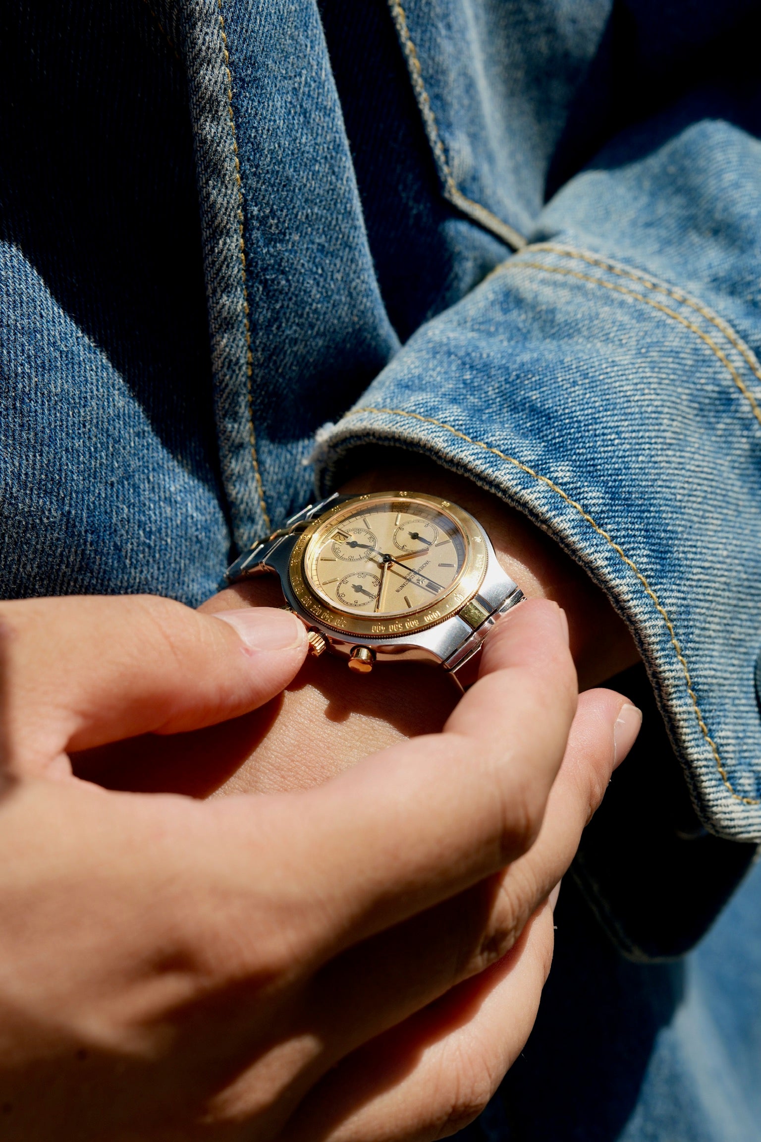 The watch presented here is the Phidias, launched in the 90's, the sports line launched after the 222. This is a Chronometre Royal model equipped with Jaeger-LeCoultre Cal.889/1, VC1126, which differentiates it from the regular model, Ref.48010 Automatic (Frederic Piguet). Unlike the regular model, this one is printed with "Royal" and is a special piece made for the wealthy. The finely detailed guilloche is very beautiful, and the supple bracelet is at the level of craftsmanship. The bracelet is beautifully detailed guilloché and the suppleness of the bracelet is at the level of craftsmanship. The watch is also wonderfully thin, and while it is a sports watch, it also has the dignity of a dress watch. The size is 35mm, which is appropriate for the 90s, and the thickness is 8mm, which makes it fit like a dress watch. It is not overly flashy, and while being chic, it is also powerful. It is truly an elegant, luxurious, yet understated sports watch. The mechanism has been maintained at our partner's workshop. It has not been polished. |