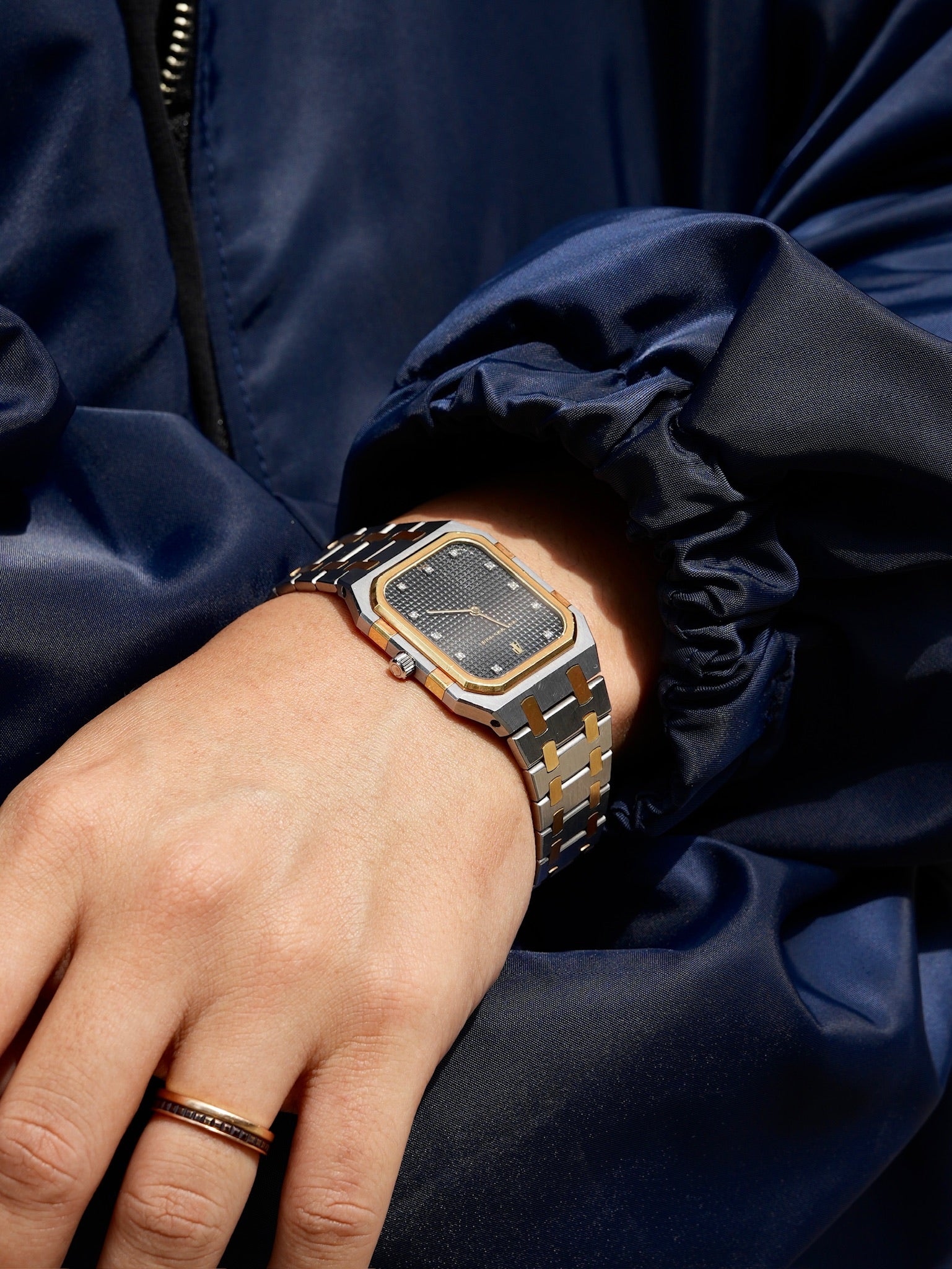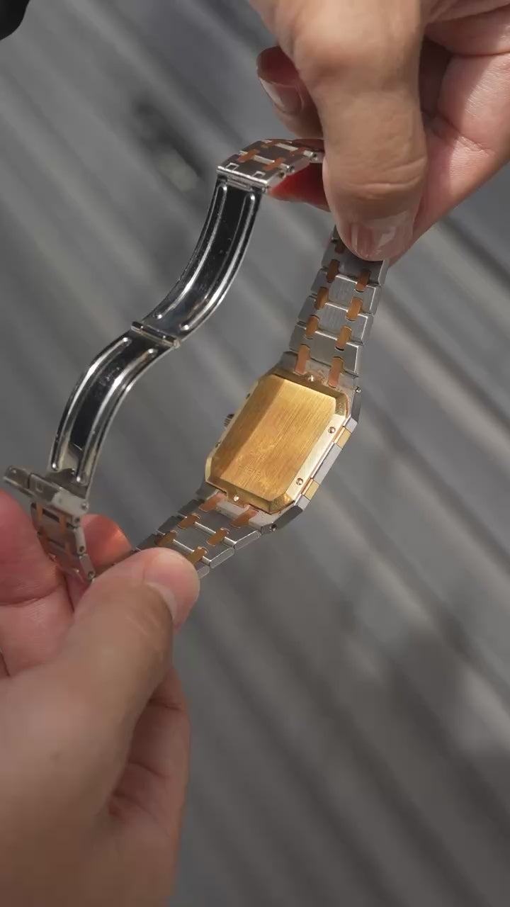 | The Audemars Piguet Ref. 6005SA is an extraordinary piece that perfectly embodies the elegance of late 1970s to 1980s luxury watchmaking. While the standard 6005SA measures 27×33mm, this rare Jumbo version at 32×41mm offers a completely different level of presence and rarity, making it one of the most coveted variations of the series. At the heart of this model lies the QZ2511, an exclusive and highly refined quartz movement created by Audemars Piguet during an era when the brand was exploring ultra-thin, high-precision calibers. Unlike mass-produced quartz movements of the time, the QZ2511 represents meticulous finishing and advanced engineering, delivering exceptional accuracy while allowing for an impressively slim case of just around 6mm. The dial is truly special. Unlike most quartz watches from the 1980s, which were often marked with the word “Quartz,” this model features a completely clean dial. This detail, combined with its diamond hour markers, elevates the aesthetic to the level of a fine jewelry watch. It retains a timeless elegance, appealing to collectors who prefer a pure, unbroken design free from unnecessary text. The result is a watch that could easily be mistaken for a hand-wound or automatic masterpiece at first glance. The design carries clear echoes of the legendary Royal Oak, with an integrated stainless steel and 18K yellow gold bracelet and a striking two-tone case. The larger case size gives it a strong, modern wrist presence while maintaining a refined, vintage charm. The gold center links and diamond indexes catch the light beautifully, offering both sophistication and understated luxury. This rare Jumbo Ref. 6005SA is more than just a watch—it is a true collector’s piece, embodying the artistry and innovation of Audemars Piguet during a transformative era in Swiss watchmaking, and a testament to timeless design that continues to captivate enthusiasts today. 【Detail】 Ref. 6005SA 80's 18K×SS 32×41 QZ(QZ2511) Good condition With Box and AP Repair sheet |