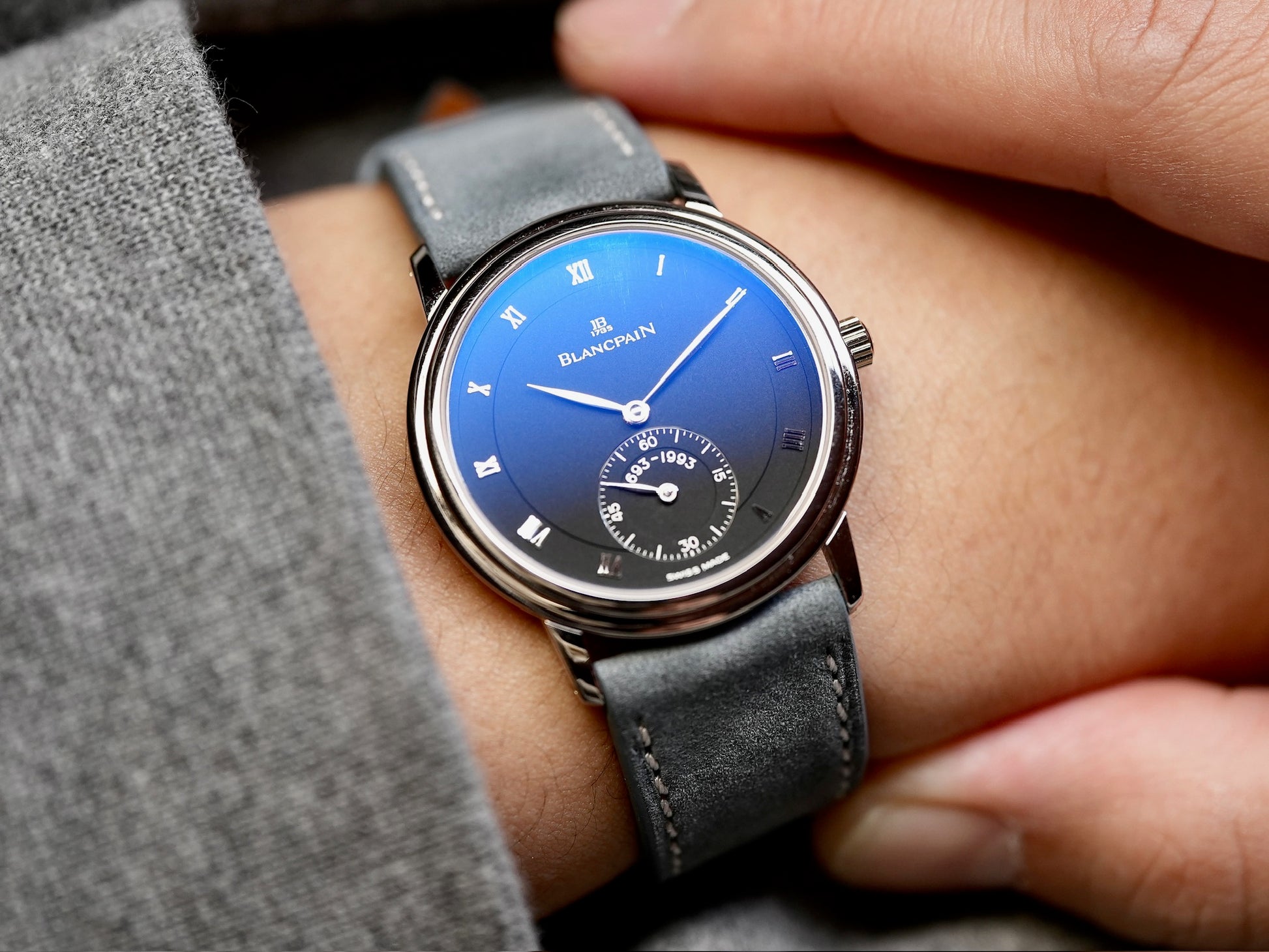 | The Villeret collection, which played a major role in Blancpain's mechanical watch revival in the 1990s, is now in stock. This time around, the collection is available in particularly rare as well as a vintage black dial limited to 300pc. The Villeret embodies Blancpain's classic style, simple and elegant. The traditional round case, Roman numerals indexes, and slender leaf hands are all elements that will appeal to classic watch lovers, while the Villeret is also a platform for Blancpain's advanced watchmaking technology. The Villeret also offers models with complications such as perpetual calendar, moon phases, tourbillon, and minute repeater, thus demonstrating Blancpain's technological prowess. Also not to be overlooked is the fusion of tradition and innovation. Through Villeret, Blancpain has maintained its traditional watchmaking techniques, while at the same time incorporating new technologies and materials to improve the precision and durability of its timepieces, an important strategy that has reaffirmed the value of mechanical watches at a time when quartz watches were the norm. In addition, all Villeret watches are handcrafted by skilled artisans, and each watch is a work of art in its beauty and high quality. In addition, the elegant beauty of the blue or black dials is an added attraction. These dials are in harmony with Villeret's classical design and give the watches a refined and sophisticated look. The blue dials, in particular, offer visual pleasure by showing different tones depending on the angle of light, and are also noted for their rarity and collectability. Because blue and black dials are produced in limited numbers compared to standard white and silver dials, their rarity is a major attraction for collectors, and models with rare dials tend to increase in value on the market, attracting attention as an investment. Finally, the 34mm size harks back to a more classical and elegant era before modern, larger watches became the norm, so this understated size, with its vintage feel and classic appeal, is particularly appealing to those who prefer vintage watches. |