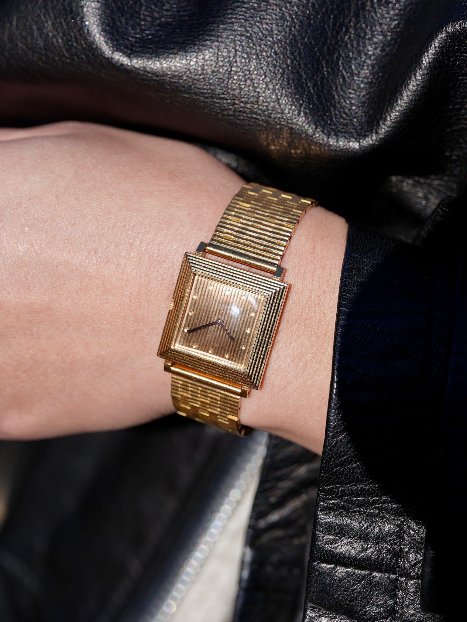 | Boucheron is renowned as a prestigious French jeweler, but its history in watchmaking is also fascinating. Founded in 1858 by Frédéric Boucheron in Paris, the brand began producing high-end watches alongside its jewelry collections in the late 19th century. Early Boucheron watches were distinguished by their fusion with jewelry, with decorative designs that were particularly popular among women, including bracelet watches and pendant watches. In the 20th century, Boucheron integrated Swiss watchmaking expertise with French aesthetics to create unique timepieces. During the 1920s and 1930s, the brand embraced Art Deco influences, producing watches with geometric designs and refined elegance. In the 1950s and 1960s, Boucheron leveraged its expertise as a jeweler to craft luxurious watches using gold and precious stones. The Carré model from this period exemplifies the brand’s sculptural approach to design, featuring a stepped bezel and a dial adorned with fine ribbed detailing. Boucheron’s watches have always been more than just timepieces; they are wearable works of art that emphasize both beauty and functionality. This commitment to elegance continues to define the brand today. Since the 1980s, Boucheron has introduced more refined mechanical and complication watches, establishing itself further in the world of haute horology. Currently, the brand collaborates with Swiss watchmakers to produce timepieces that seamlessly blend Boucheron’s distinctive design language with expert craftsmanship. This 1960s Carré watch is a prime example of an era when Boucheron’s timepieces perfectly merged jewelry and horology. The signature stepped bezel, ribbed dial, and seamlessly integrated gold bracelet embody the refined elegance of mid-century French design. Even today, this vintage watch remains highly sought after, appreciated for its timeless beauty and uniqueness. It is recommended for those with slender wrists up to 15cm or for ladies looking for a sophisticated and elegant timepiece. |