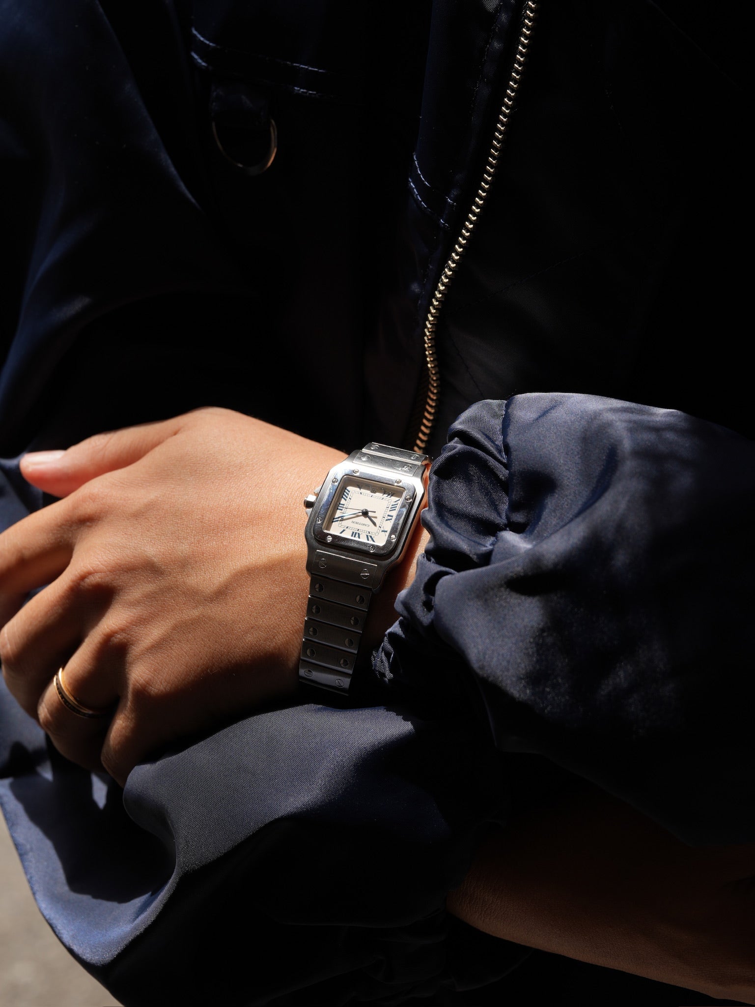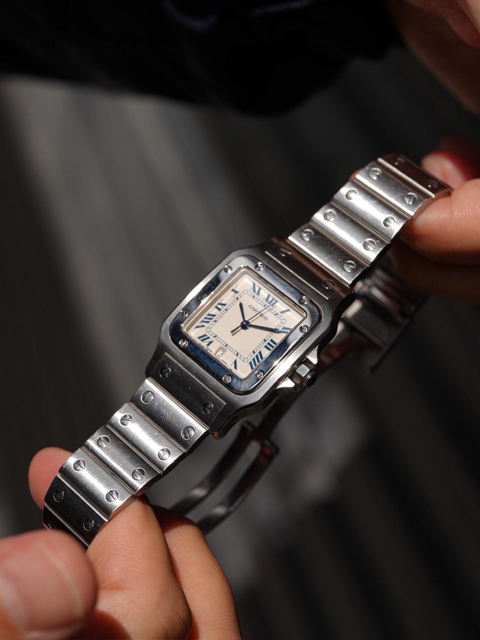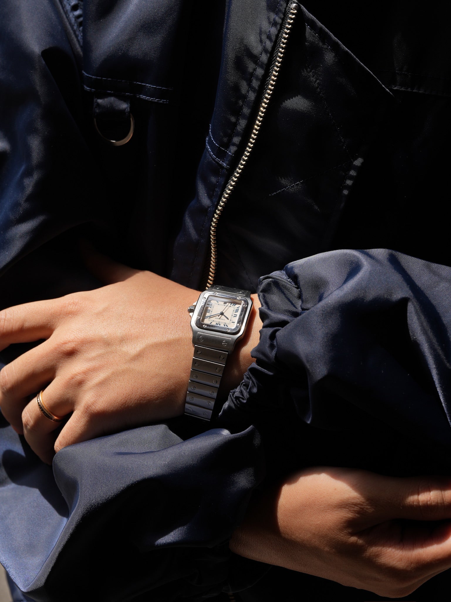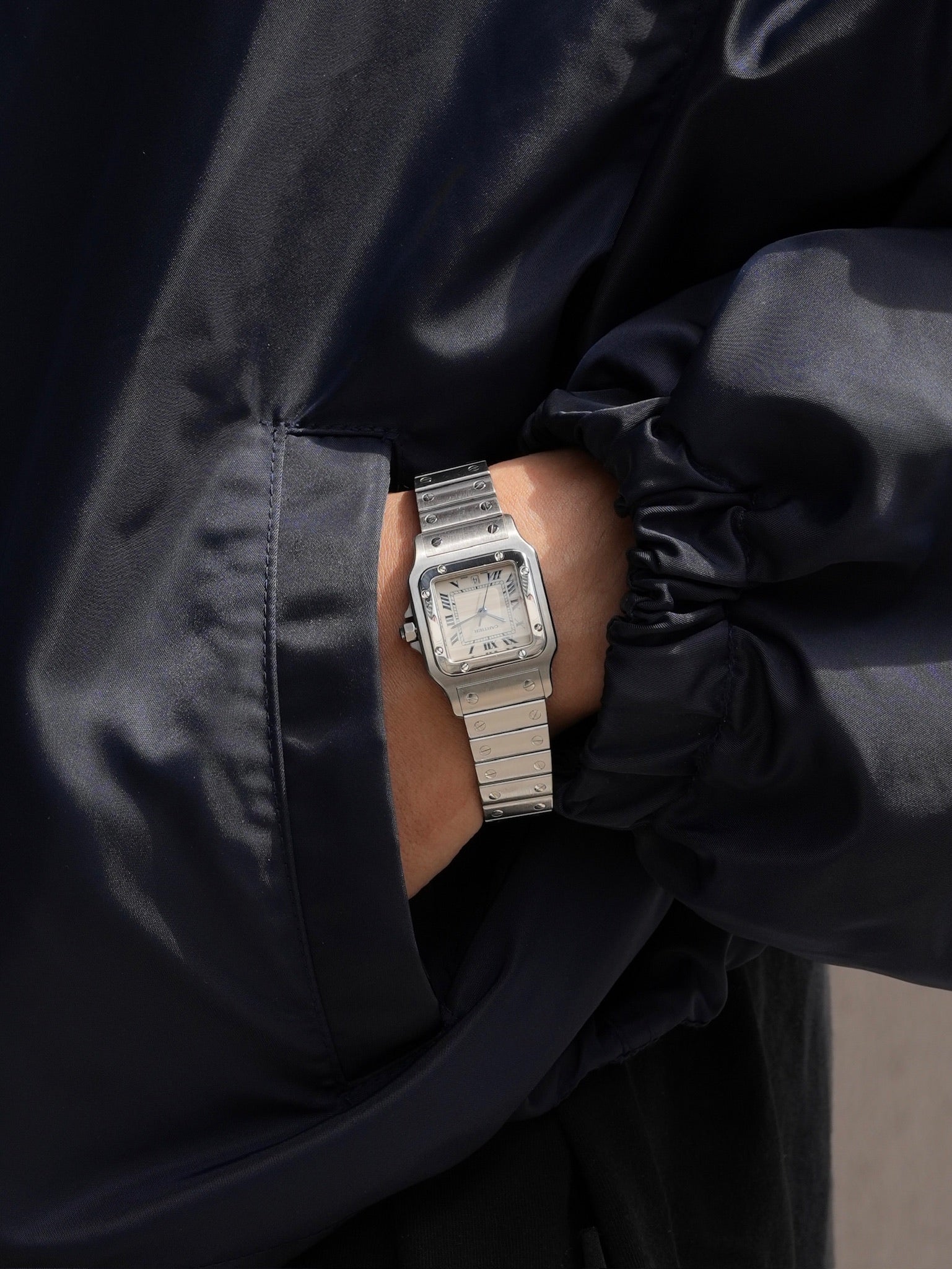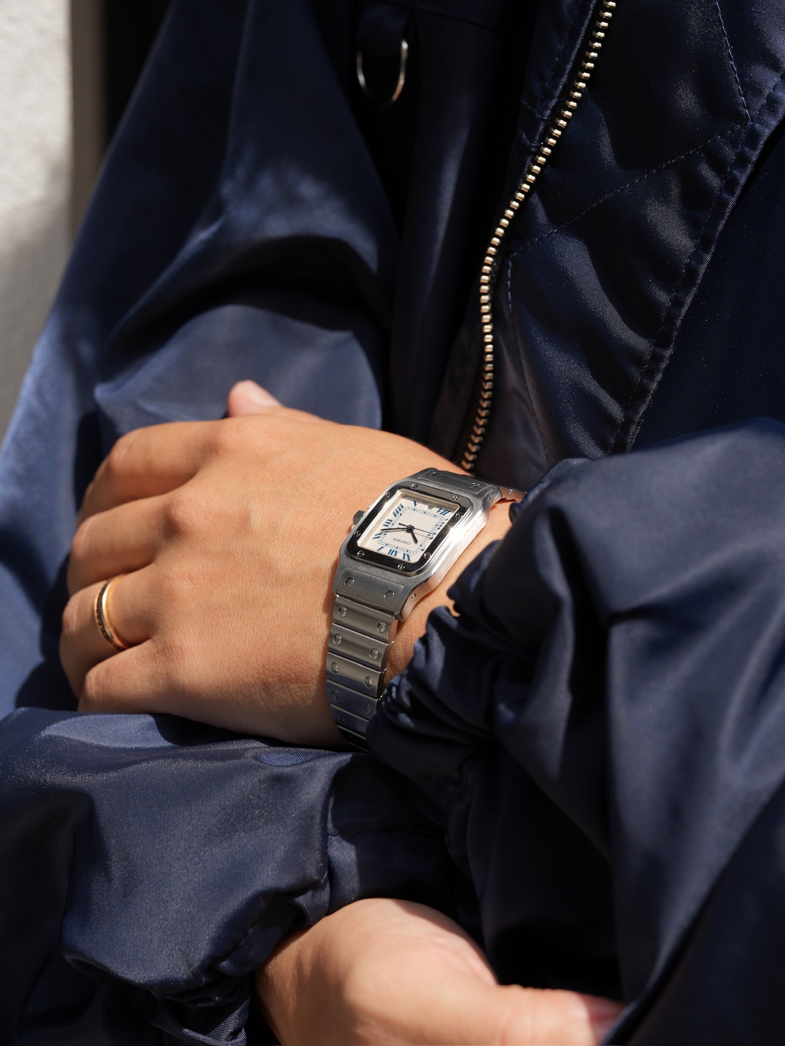 | Cartier Santos Galbée Ref.1564 This Cartier Santos Galbée, reference 1564, dates back to the 1990s. Crafted in stainless steel, the case measures 29mm, offering a refined and timeless presence on the wrist. Powered by a quartz movement, it provides hassle-free precision, making it an ideal choice for both everyday wear and special occasions. The watch remains in very good overall condition and comes with its original box. The bracelet fits wrists up to approximately 18cm. With its signature screw motif and elegantly curved case lines, this Santos Galbée perfectly captures the understated sophistication of 1990s Cartier design. |