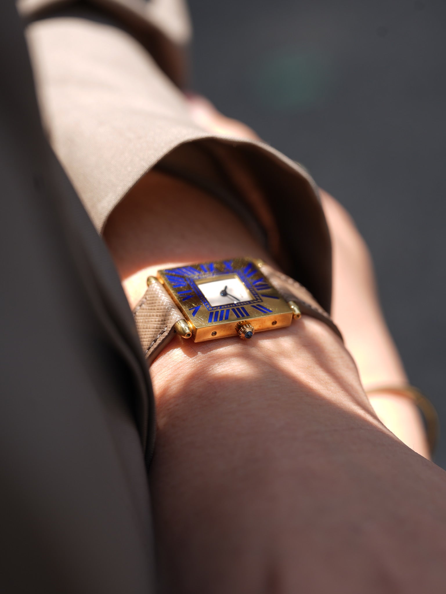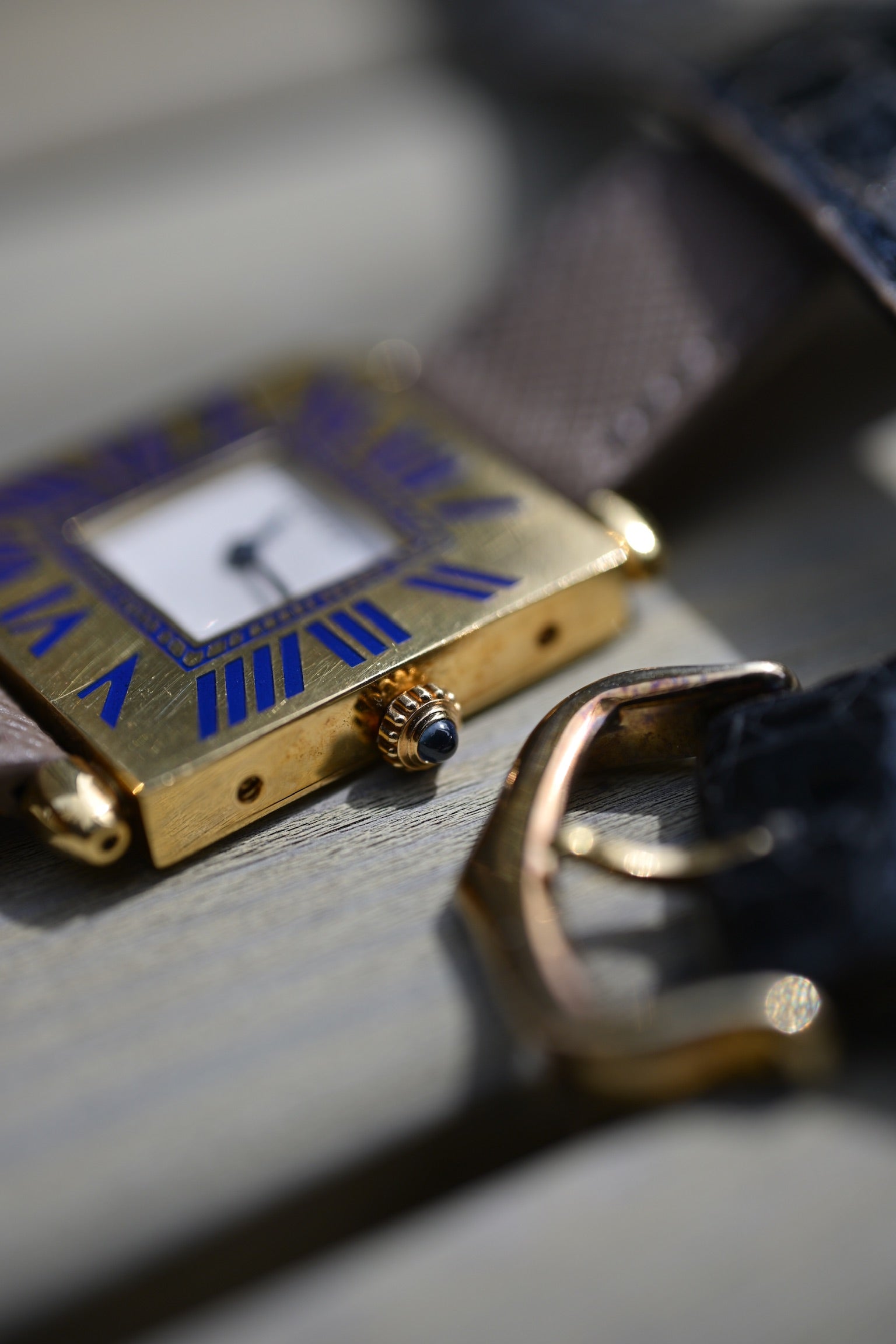 | The 1980s Cartier’s Golden Era of “Jewelry Watches” The 1980s marked a turning point for Cartier, as the brand elevated its watchmaking to new heights. With the rise of quartz movements, watches became thinner and more precise, allowing for innovative and sophisticated designs. At the same time, Cartier solidified its reputation for merging fine watchmaking with jewelry craftsmanship, creating the category of “jewelry watches.” The Tank Obus is a prime example of this unique fusion. A Distinctive Design That Stands Apart Since its debut in 1917, the Tank has been renowned for its clean lines and timeless elegance. However, the Tank Obus breaks away from tradition with its most striking feature: enamel Roman numerals placed directly on the bezel. Unlike conventional Tanks, where numerals are confined to the dial, this model extends them onto the case itself, creating a bold and decorative aesthetic. The combination of a classic gold case and deep blue enamel numerals results in a watch that is both refined and unmistakably unique. A Rare Find – A Once-in-a-Lifetime Opportunity Compared to mainstream models like the Tank Louis Cartier or Tank Américaine, the Tank Obus is significantly rarer, particularly in this LM (Large Model) size. Most surviving examples tend to be smaller, jewelry-like pieces, making a full-sized men’s version an exceptionally scarce find. Due to its rarity, collectors highly prize this model, and it seldom appears on the market. For Those Seeking a Truly Special Piece No modern Tank model features numerals on the bezel—this is a design element exclusive to a bygone era. This watch captures the innovative spirit of 1980s Cartier, blending the Tank’s timeless sophistication with the boldness of high jewelry design. Whether worn in formal settings or paired with casual attire, it exudes an unmistakable presence. With its unique historical charm and impeccable craftsmanship, this is a timepiece that cannot be replicated today. Miss this opportunity, and you may never find another one like it. If the watch contains materials restricted by the Washington Convention, such as crocodile leather straps, we will remove those materials before sending the watch overseas. |