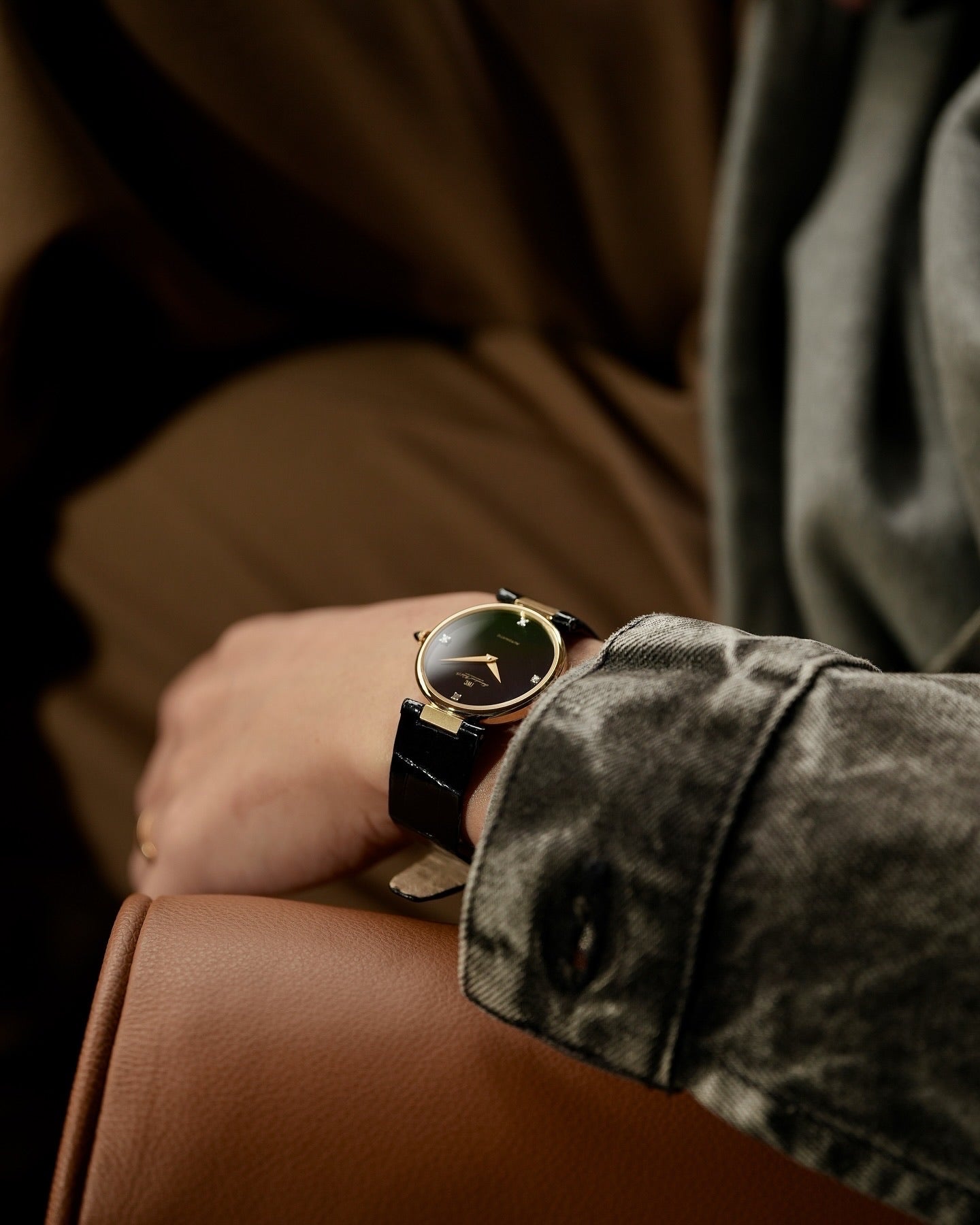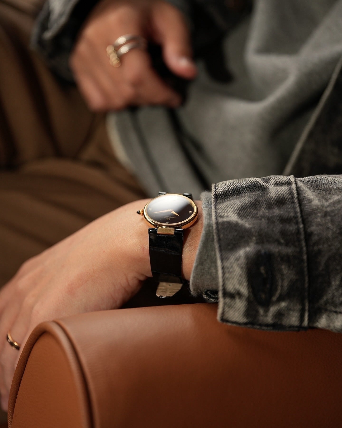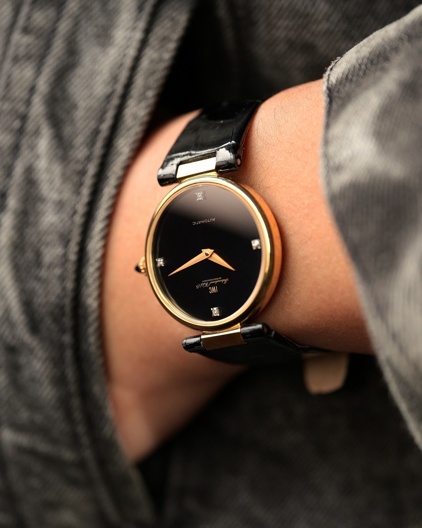 | The IWC 3203, released in the late 1970s, features a 33mm case that aligns perfectly with today’s trend of smaller-sized watches, making it an ideal choice for both men and women who appreciate vintage aesthetics. The combination of an 18K yellow gold case and a deep black dial creates an elegant contrast, with gold hands and case enhancing its luxurious appeal. The distinctive lug design adds a unique touch while maintaining a classic look. The dial is further elevated by four diamond-set indices at the 12, 3, 6, and 9 o’clock positions, bringing a subtle yet refined luxury. Powered by the automatic Cal.3251 movement, this watch embodies IWC’s high-precision craftsmanship from the 1970s, offering a slim profile without compromising functionality. The sharply pointed black cabochon crown stands out against the gold case, demonstrating meticulous attention to detail that will captivate watch enthusiasts. It shares a striking resemblance to the recently released IWC 3280, which was immediately placed on hold upon its release yesterday. With a similar era of production, both models feature comparable lug designs, dial aesthetics, and crown shapes, making the 3203 a compelling choice for those who appreciate the timeless elegance of vintage IWC watches. Among vintage IWC models, the 3203 stands out as a particularly unique piece that seamlessly blends style and practicality. |
