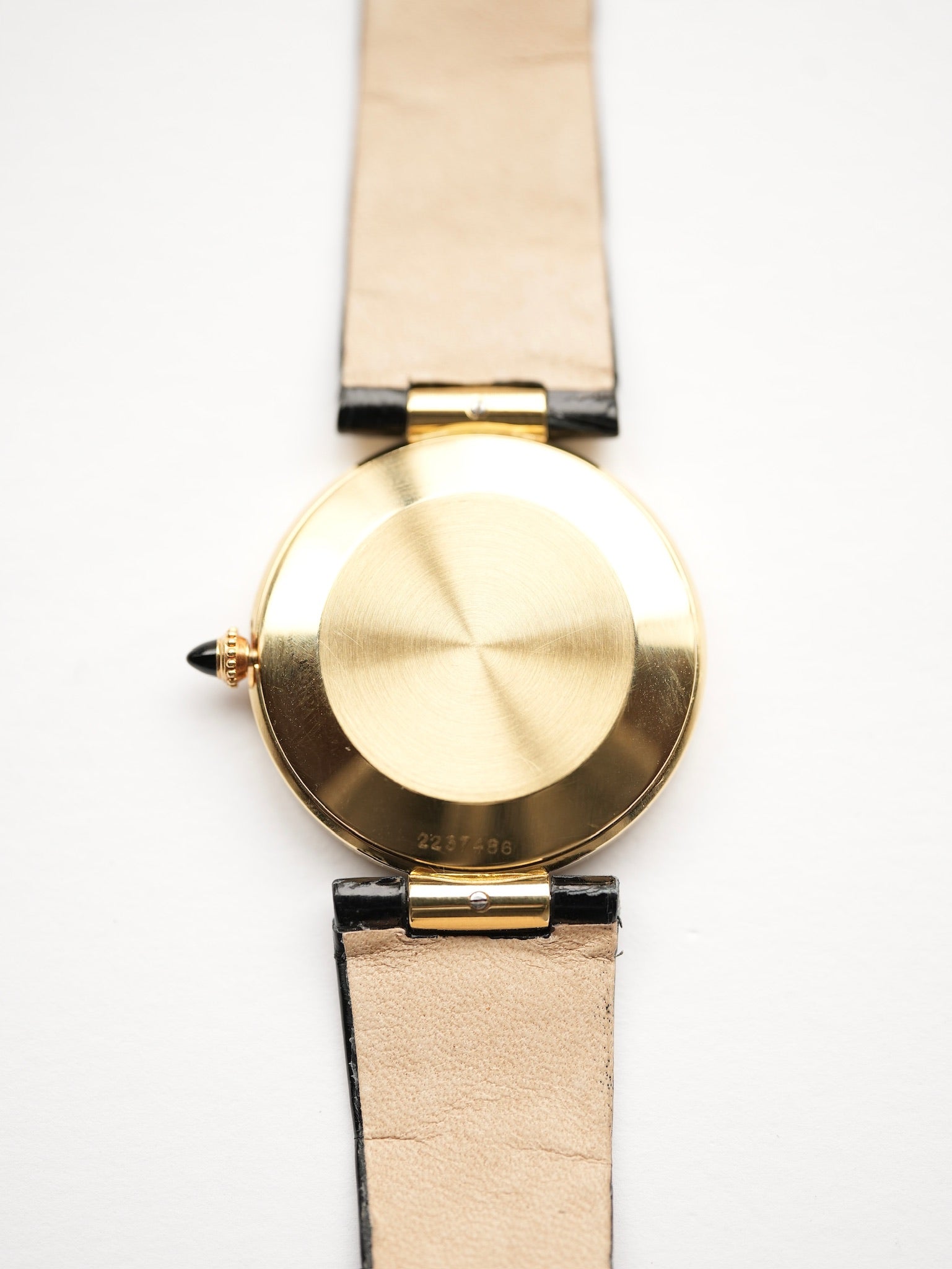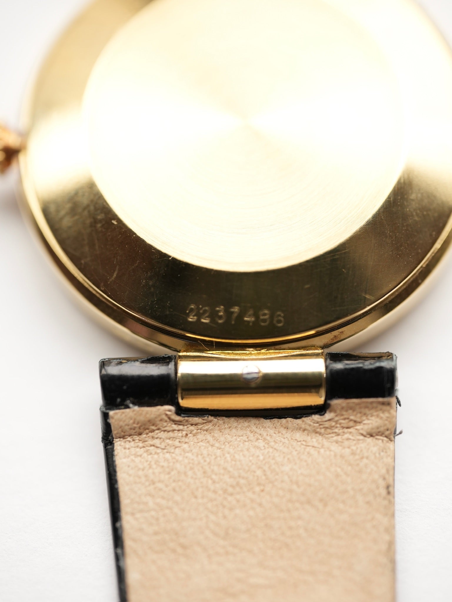 | **IWC 3203: 1970年代後期のヴィンテージエレガンス** 1970年代後半に登場した**IWC 3203**は、**33mmケース**を採用し、近年の小型時計のトレンドにもぴったりと合致するサイズ感を持つ一本です。そのため、**ヴィンテージの美学を好む男女ともに最適な選択肢**となります。 **18Kイエローゴールドケースと深みのあるブラックダイヤル**の組み合わせは、洗練されたコントラストを生み出し、ゴールドの針とケースがその**高級感を一層引き立てています**。また、独特なラグデザインがクラシックな印象を保ちつつ、個性的なアクセントを加えています。 ダイヤルには、**12・3・6・9時位置にダイヤモンドをセットしたインデックス**が配されており、控えめながらも上品なラグジュアリー感を演出。さらに、搭載されている**自動巻きCal.3251ムーブメント**は、1970年代のIWCの精密な時計製造技術を象徴しており、**スリムなフォルムと実用性を兼ね備えた設計**となっています。 また、**シャープなブラックのカボション付きリューズ**がゴールドケースとのコントラストを際立たせ、細部にまでこだわったIWCの美意識が感じられます。このモデルは、**昨日発表と同時に即完売となったIWC 3280**との類似点も多く、特に**製造年代やラグデザイン、ダイヤルの美しさ、リューズ形状**などが共通しています。そのため、**クラシックなIWCのエレガンスを堪能したい方にとって、3203は非常に魅力的な選択肢**となるでしょう。 ヴィンテージIWCの中でも、**3203は特に個性的な一本**であり、スタイルと実用性を兼ね備えた**タイムレスな魅力を放つ逸品**です。 |