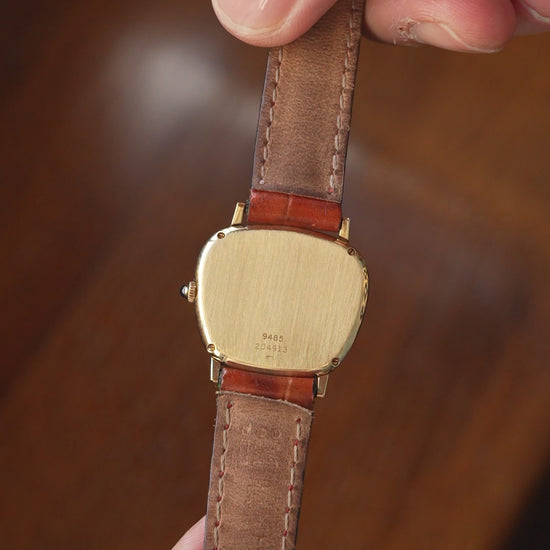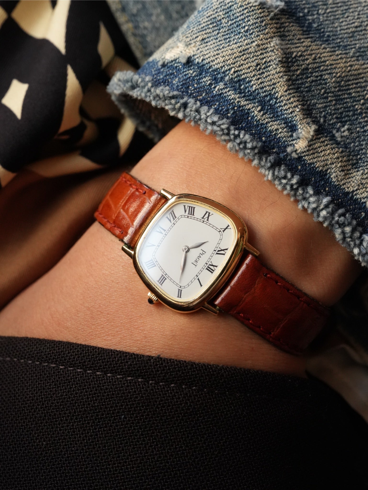 | Piaget Ref.9485 — The Poetic Asymmetry of Time At first glance, the Piaget Ref.9485 appears simple — a classic gold dress watch with Roman numerals and gentle curves. But look closer, and you’ll find that its true beauty lies in asymmetry. The softly skewed cushion case breaks the idea of perfect balance, creating instead a harmony that feels more human, more emotional. It’s a design that breathes — a form that finds poetry in imperfection. Where symmetry speaks of order, this watch whispers of movement. Its curves flow like a brushstroke, turning geometry into emotion. Every line seems to shift slightly under light, revealing Piaget’s rare ability to blend discipline with sensuality. In an age obsessed with precision, this quiet irregularity became its most refined expression of elegance. The white enamel-style dial is serene yet alive. Roman numerals and a railway minute track suggest classical proportion, yet the frame feels subtly off-centered — intentional, delicate, and deeply artistic. This tension between structure and spontaneity gives the Ref.9485 its soul: a watch that doesn’t seek to impress, but to move you gently, like a whispered thought. Inside beats the legendary Caliber 9P2, Piaget’s ultra-thin hand-wound masterpiece. At only 2mm thick, it’s not just a movement — it’s a sculpture of time. Winding it feels intimate, tactile; the faint resistance beneath your fingers reminds you that time, here, is not measured but felt. It’s mechanical poetry — precise, quiet, alive. Paired with a brown alligator strap, the 18K yellow gold case glows warmly in natural light. The asymmetry becomes more pronounced in motion, the contrast between gold and leather emphasizing its soft imbalance. Where others chase perfection, this Piaget celebrates the subtle flaws that make beauty human. Unlike the brand’s stone-dial icons, the Ref.9485 doesn’t dazzle with opulence — it captivates through restraint. It is a study in Quiet Avant-Garde: daring without shouting, elegant without excess. Its strength lies in its silence, in the courage to remain understated yet unforgettable. The Piaget Ref.9485 is not about symmetry, but sincerity. It embodies the belief that true grace comes from tension, not perfection — that beauty, like time, is most profound when slightly off-center. In breaking the rules, it discovered balance. And in that quiet imbalance, it found eternity. |