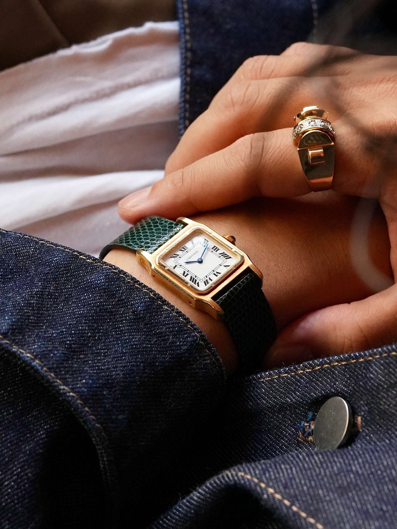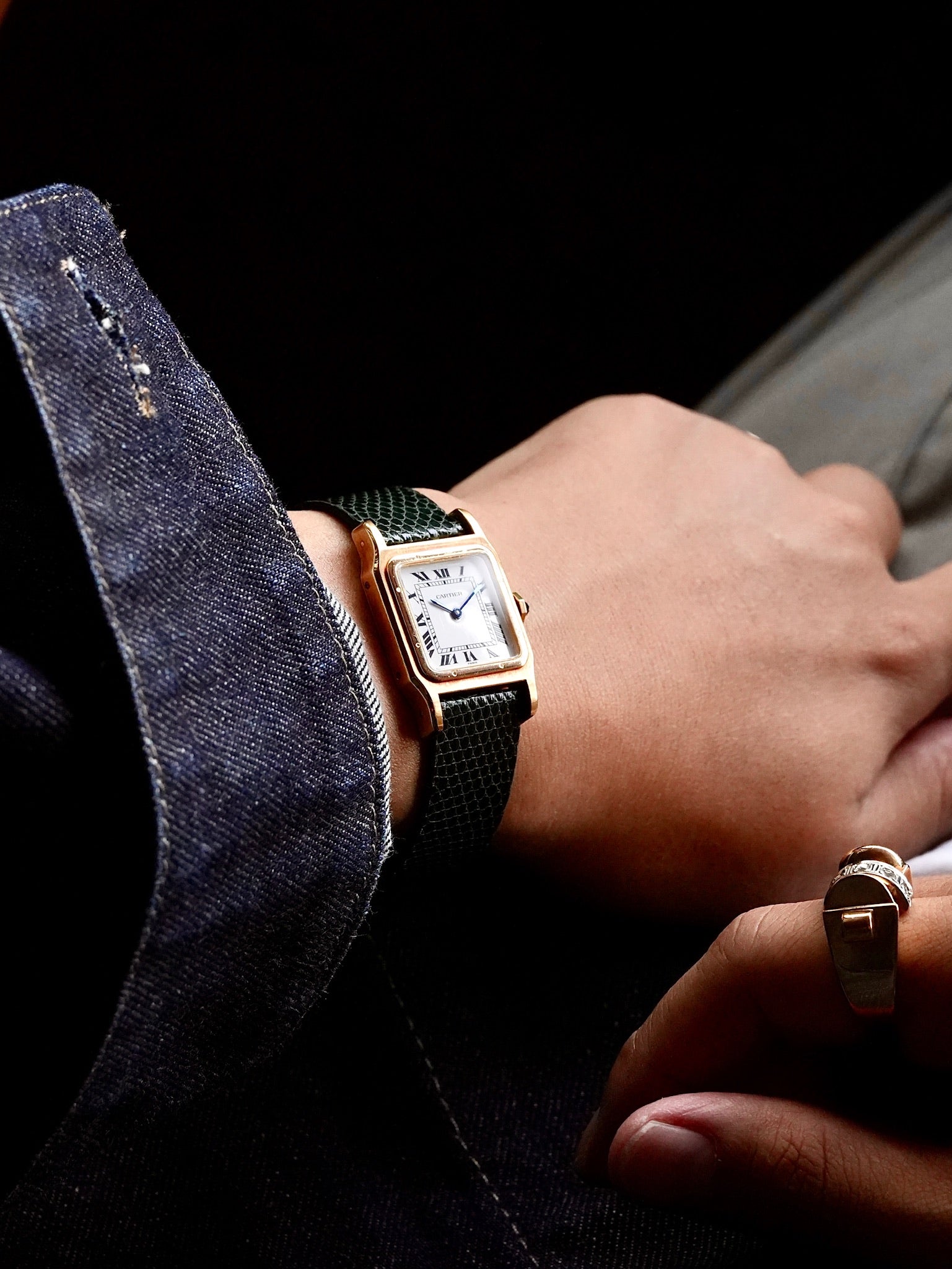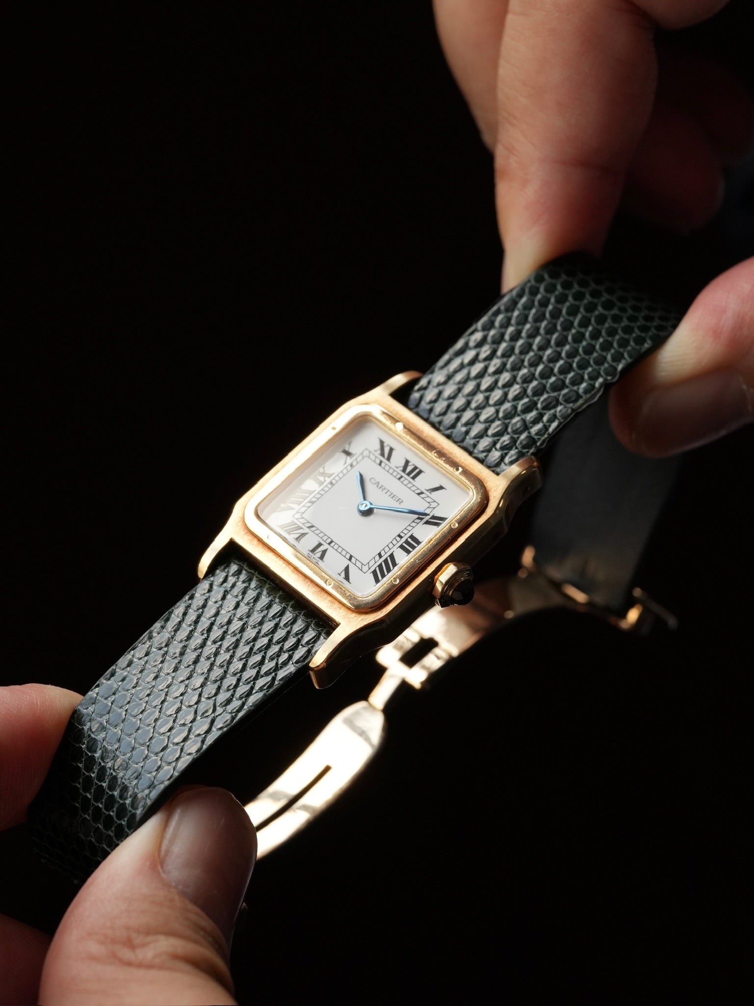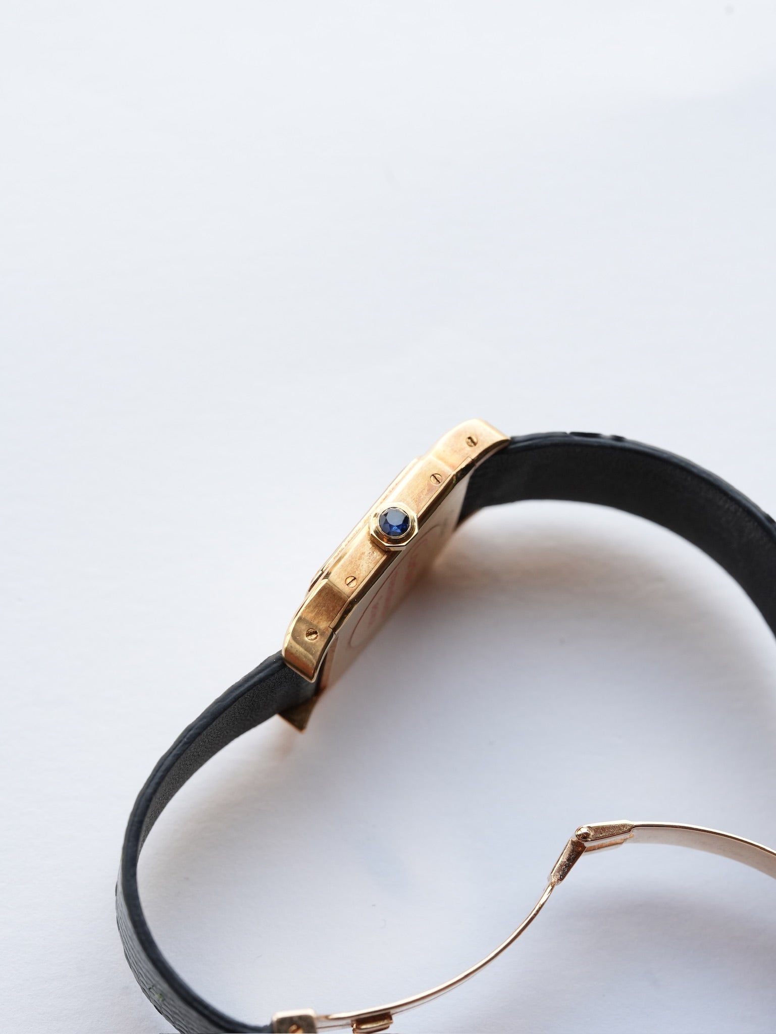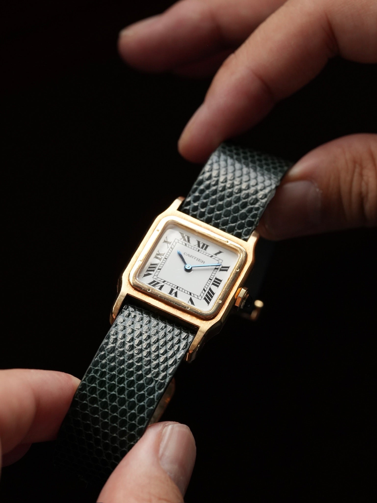 | Cartier Santos Octagon LM (31mm) Automatic A perfect blend of classic design and refined elegance, the Cartier Santos Octagon LM with automatic movement is a quiet icon of the maison. And this particular piece is far from ordinary—it embodies the essence of vintage Cartier at its finest. First, the condition is remarkably well-preserved for a vintage watch. The satin and polished surfaces remain sharp and defined, with no visible tarnish on the gold bezel or screws. Its refined presence speaks to the care and attention it has received over the years. What truly sets this watch apart is the rare “godron bracelet”, found only on early models. A fine gold line runs down the center links, adding a subtle elegance and jewelry-like sophistication. Discontinued in later versions, this bracelet now serves as a hallmark of early production, making it highly sought-after. The dial is exceptionally well-preserved, with crisp Roman numerals and a clean white surface free of notable discoloration or aging. The blued steel hands remain pristine and rust-free, catching the light beautifully and adding to the overall sense of harmony and grace. To top it off, the watch includes a full-length bracelet (20cm), suitable for a wide range of wrists, and comes with its original Cartier box—a rare and complete package. ______________________________________ Why This Piece Matters ・Excellent vintage condition with minimal wear ・Rare early-production godron bracelet ・Beautifully clean dial and rust-free blued steel hands ・Comes with full-length bracelet and original box A Cartier that speaks softly, yet with lasting impact— A timepiece not just to wear, but to admire and preserve. |