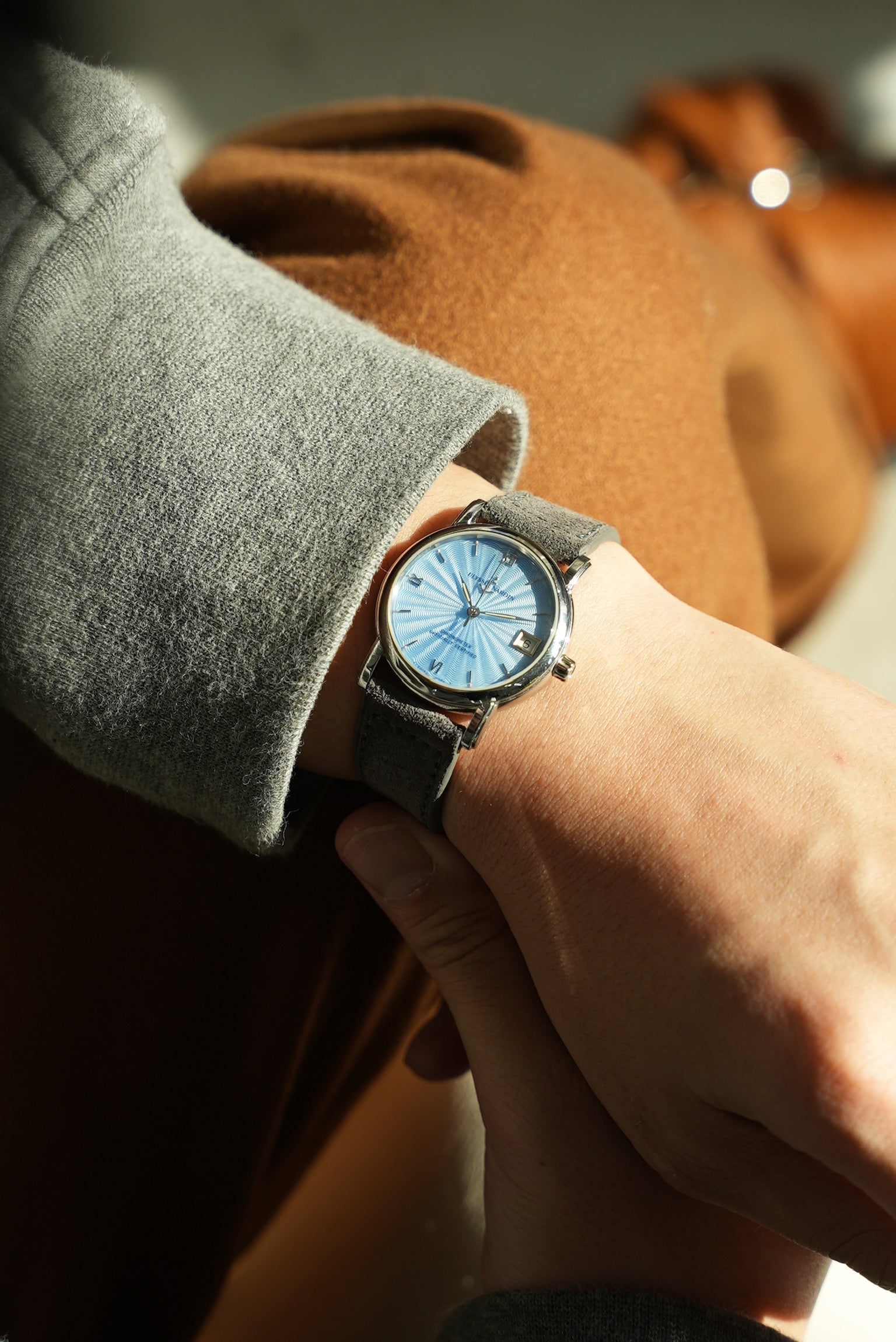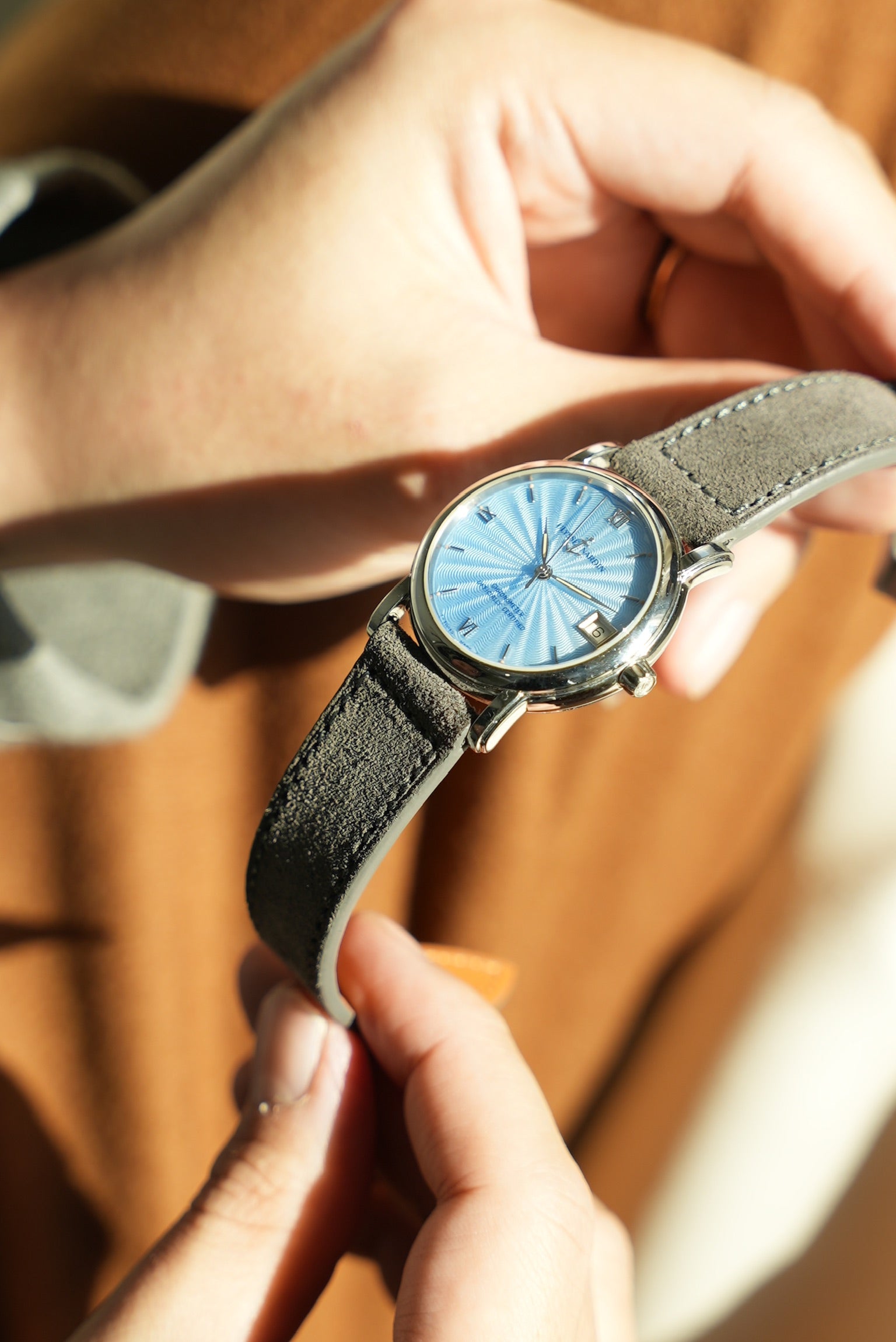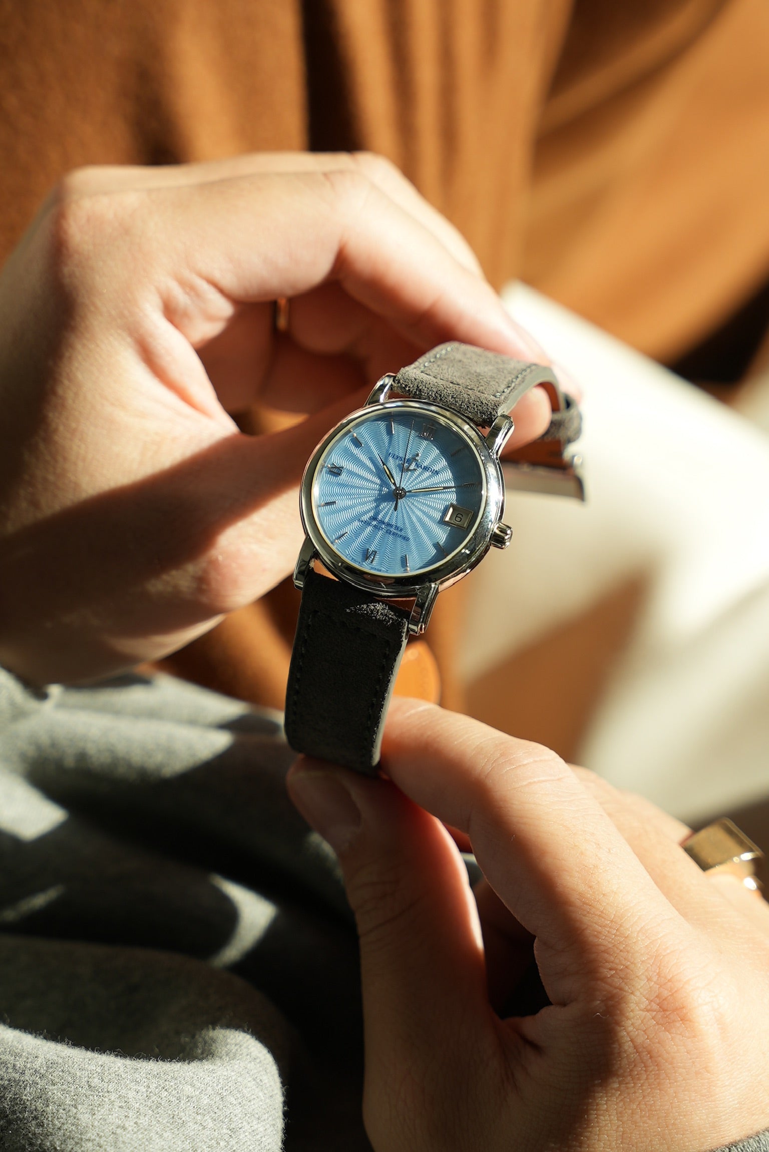 | The Ulysse Nardin San Marco from the 1990s, featuring an enamel dial and a 33mm boys’ size case, is a masterpiece of craftsmanship and timeless beauty. The standout feature is its enamel dial, crafted using delicate high-temperature firing techniques, resulting in a lustrous and richly colored blue surface that changes its expression depending on the light. This technique ensures the dial maintains its brilliance without fading over time. The 33mm modest size stands apart from modern oversized watches, offering a classic appeal that transcends gender and era. The stainless steel case, with its simple yet elegant finish, accentuates the beauty of the enamel dial, enhancing its sophistication as a dress watch. This timepiece encapsulates Ulysse Nardin’s exceptional technical prowess and artistry, making it a versatile piece suitable for both everyday wear and special occasions. |