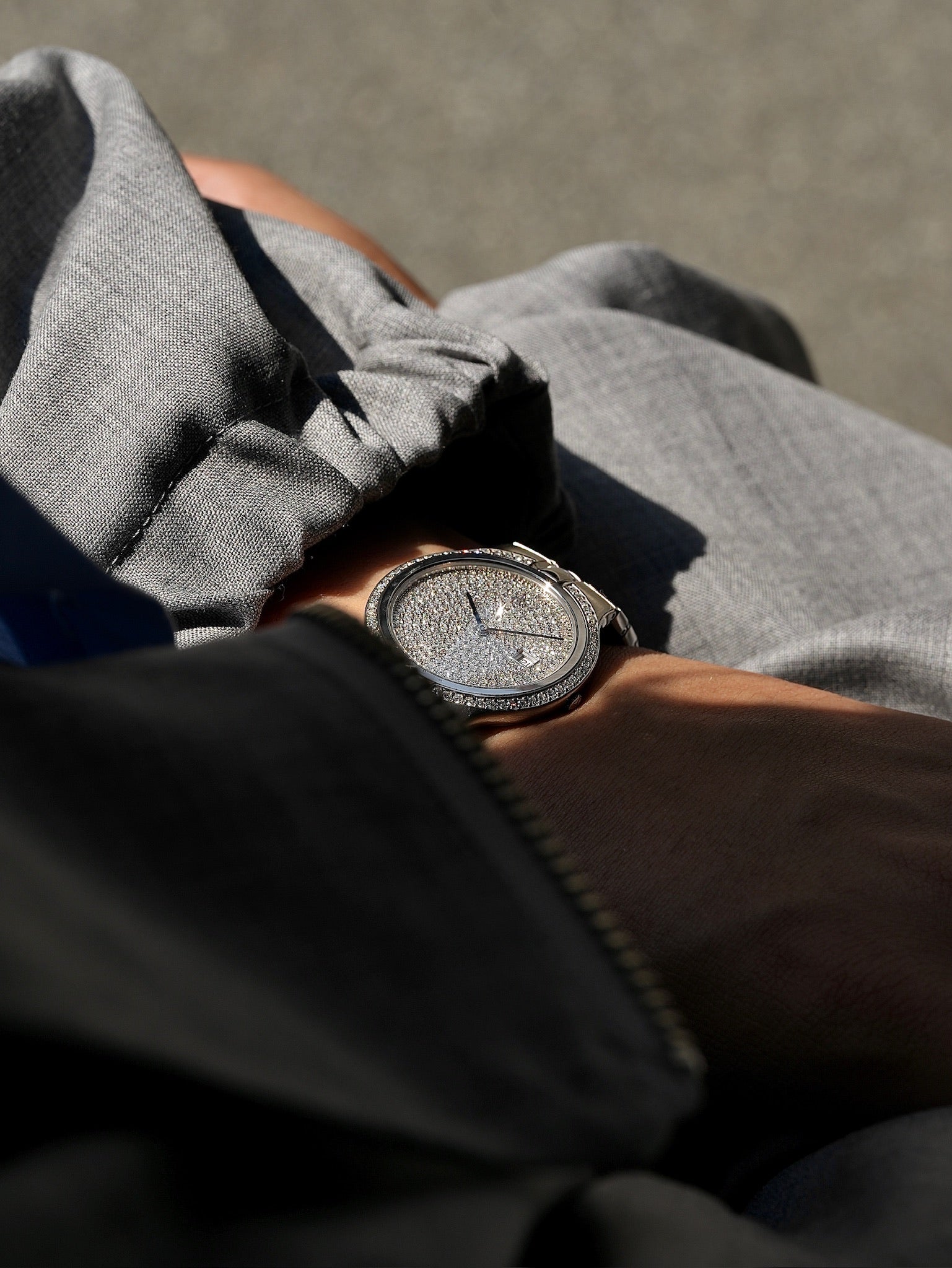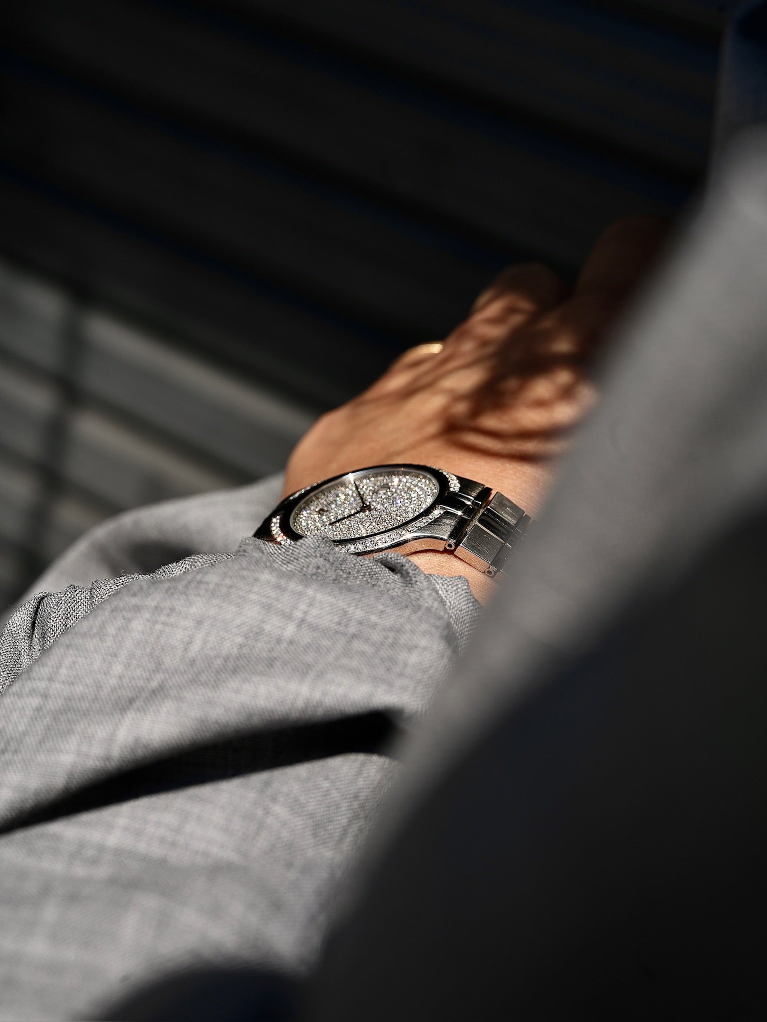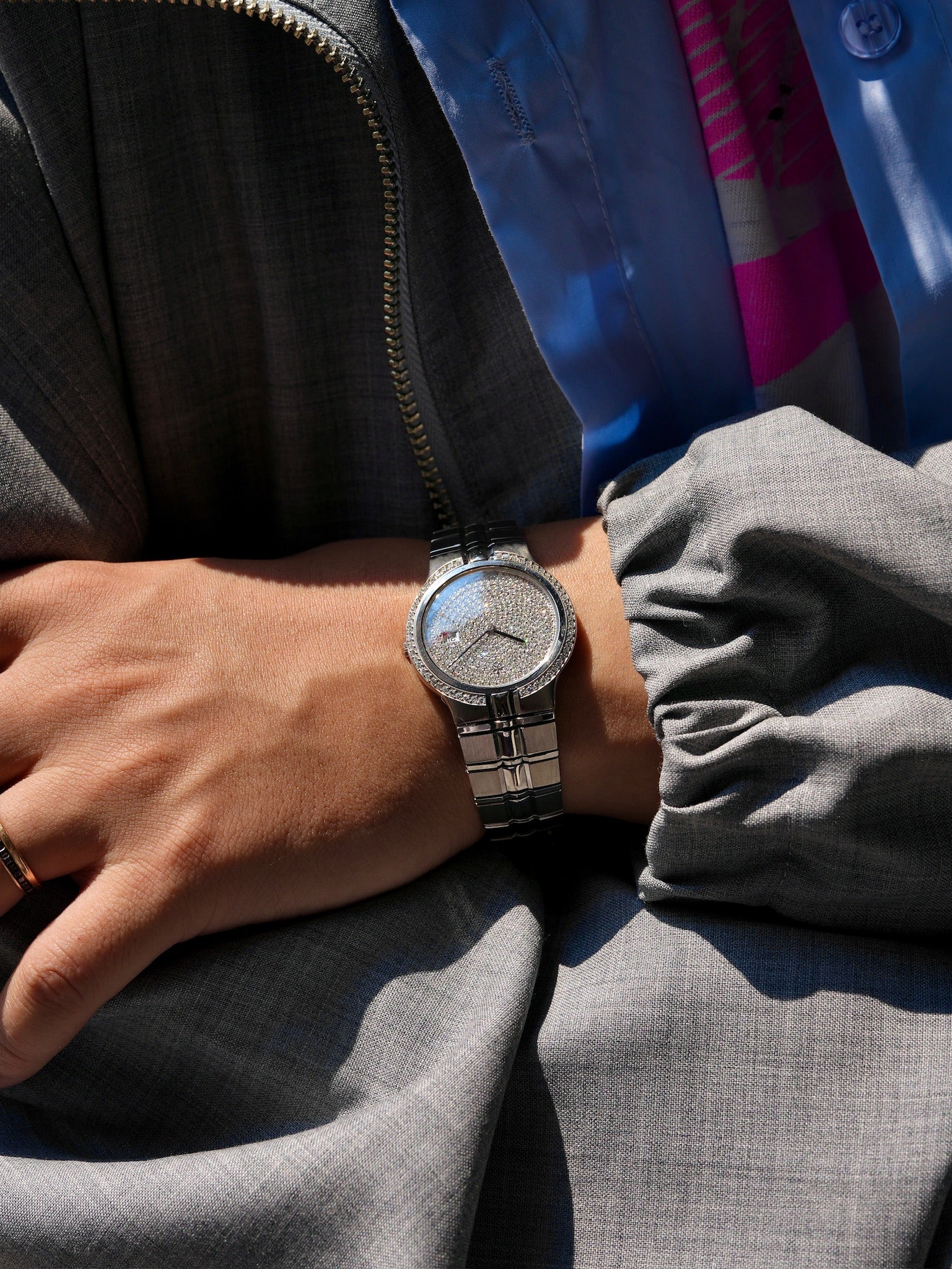 | This Vacheron Constantin Phidias Factory Diamond watch is a rare 1990s creation, combining the maison’s watchmaking tradition with the brilliance of jewelry art. Measuring 35mm, crafted in 18K white gold, and powered by an automatic movement, it offers both mechanical substance and luxury. The fully diamond-paved dial, composed of carefully matched brilliant-cut stones, radiates exceptional sparkle. The bezel is also diamond-set, while the cool glow of white gold enhances the brilliance. Unlike many jewelry watches that serve only as ornaments, this Phidias preserves true horological legitimacy with a mechanical heart. The integrated case and bracelet design flows with elegance and comfort. At 35mm, it was bold for its time, yet today it feels ideally suited as a unisex piece. It has presence without excess, striking a refined balance between glamour and sophistication. Within Vacheron Constantin’s history, the Phidias marks a transitional moment. Created during the rise of luxury sports watches, it stood between classical models like the Patrimony and what would later evolve into the Overseas. Its softer curves gave it a distinct identity, and the diamond-set versions were produced only for select clients. Their rarity makes them highly desirable today. The watch also reflects Vacheron’s affinity with elegance and jewelry. The diamonds are not applied for mere extravagance but are integrated into the design, keeping the piece tasteful and timeless. It embodies duality: jewel and watch, luxury statement and horological creation. For collectors, the appeal lies in rarity, material value, and its role in the maison’s story. Since modern Vacheron models rarely echo this style, the Phidias Factory Diamond stands as a true relic of its era—an emblem of 1990s glamour, elevated by enduring refinement. Ultimately, the Vacheron Constantin Phidias 35mm Automatic in 18K White Gold with Factory Diamond Dial and Bezel is not only a timepiece but also a statement of rarity, elegance, and heritage. Bold yet refined, radiant yet discreet, it remains as captivating today as when it left Geneva’s workshops. 【Detail】 90's 18WG Factory diamonds 35mm AT 17cm wrist |